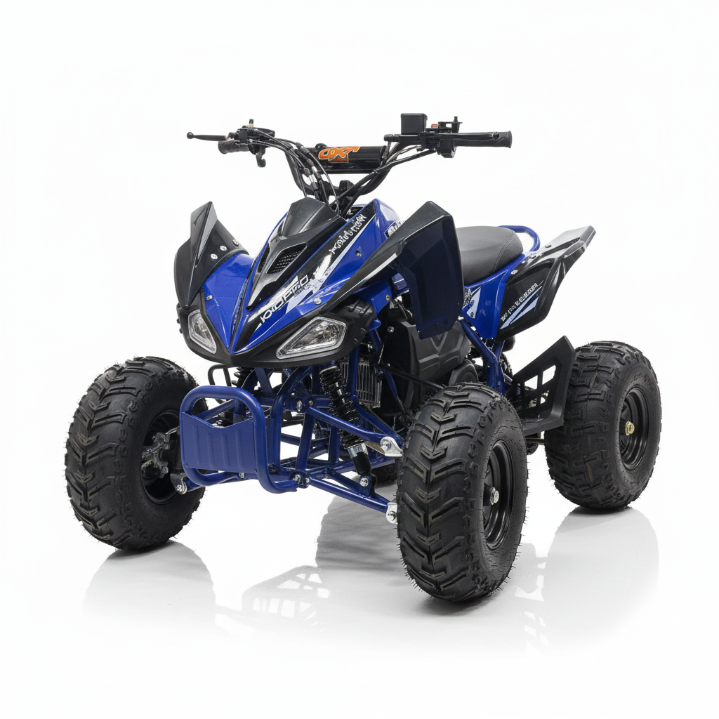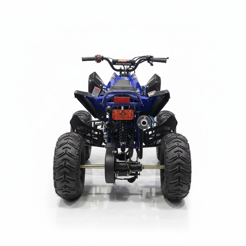Dit is een kinderquad die van benzine voorzien moet worden. De 7 inch banden zorgen ervoor dat deze quad stevig staat. Bovendien voorzien deze banden de quad van veel grip. Hierdoor is dit model geschikt voor verschillende soorten terrein. Zonder problemen kan er gereden worden op het zand van een crossbaan, maar ook op gras kan gereden worden met deze kinderquad vol benzine. Ideaal als je bijvoorbeeld beschikt over een eigen weiland. Er wordt een afstandsbediening bijgeleverd die het mogelijk maakt om de quad op afstand uit te schakelen. Perfect als je kleine snelheidsduivel even afgeremd moet worden.