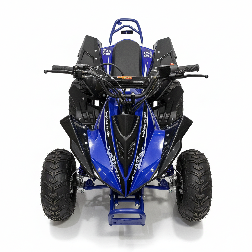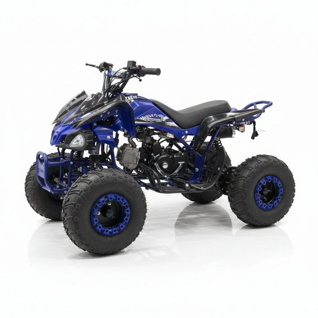 Dat deze ATV Kinder Quad Evolution 125cc Blauw als krachtig bestempeld kan worden, zeggen we met gevoel voor understatement. De ruime inhoud van de cilinder, 125cc in totaal, is niet het enige wat dit model tot één van de krachtigste kinderquads van nu maakt. Deze 125cc 4-takt kinder quad combineert dit namelijk met grote afmetingen, een stevig frame en grote veringen die zeer goed werken. Kracht wordt gecombineerd met snelheid, want deze kinderquad op benzine kan een maximale snelheid van 65 km/u behalen. Dankzij de begrenzing stel je zelf als ouder de maximaal haalbare snelheid van deze quad in.