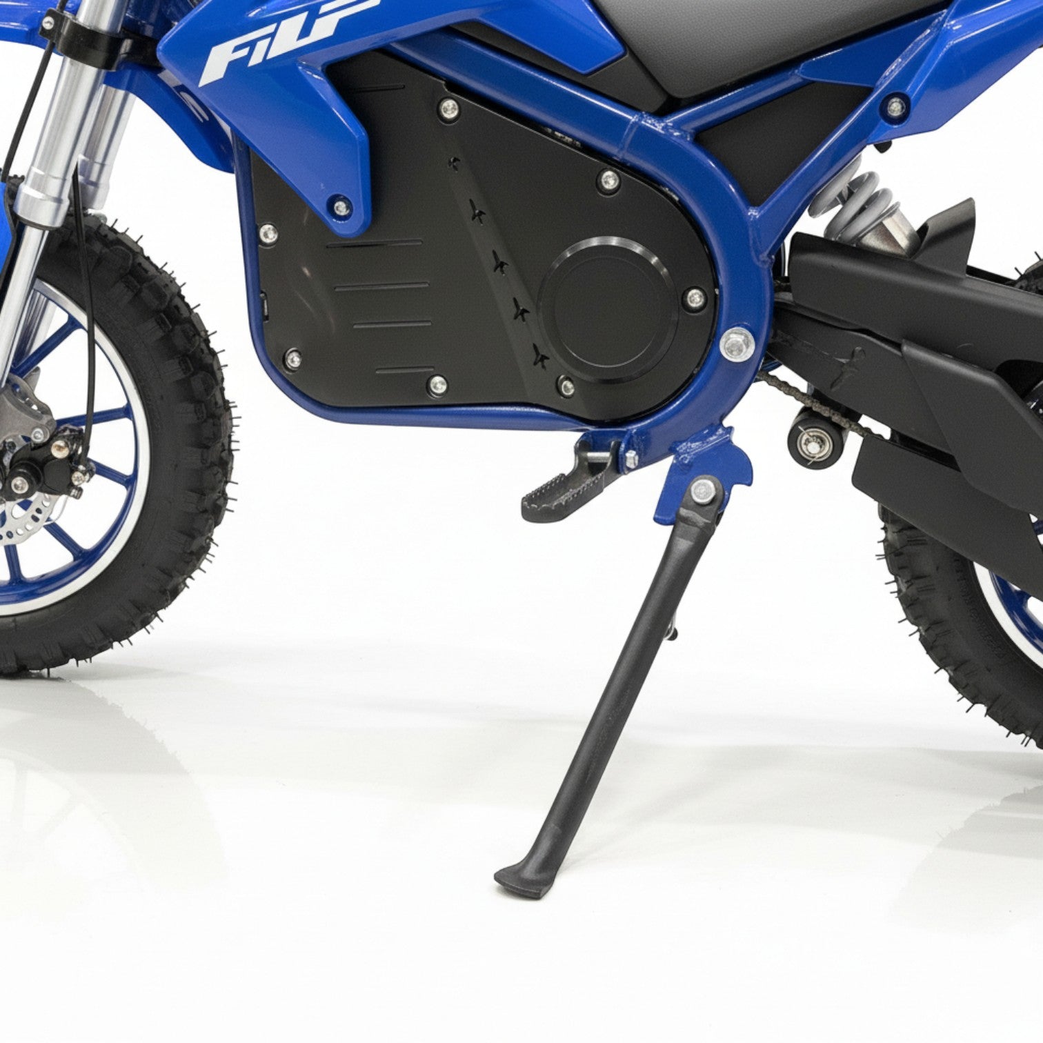 Deze blauwe kindercrosser wordt gekenmerkt door zijn kracht. Het totale vermogen is 1000 watt en de accu heeft een inhoud van 36V. Hierdoor heeft dit model genoeg kracht om iedere ondergrond aan te kunnen, hoe ruw het terrein ook is. Andere eigenschappen die hieraan bijdragen zijn de rubberen luchtbanden en het extra stevige metalen frame. Je zou met deze blauwe elektrische kindercrosser kunnen gaan veldrijden. Zo ruim zijn de mogelijkheden als je voor dit kindervoertuig kiest. We overdreven niet toen we zeiden dat dit de ultieme kindercrosser van dit moment is. Ontdek zelf waarom.