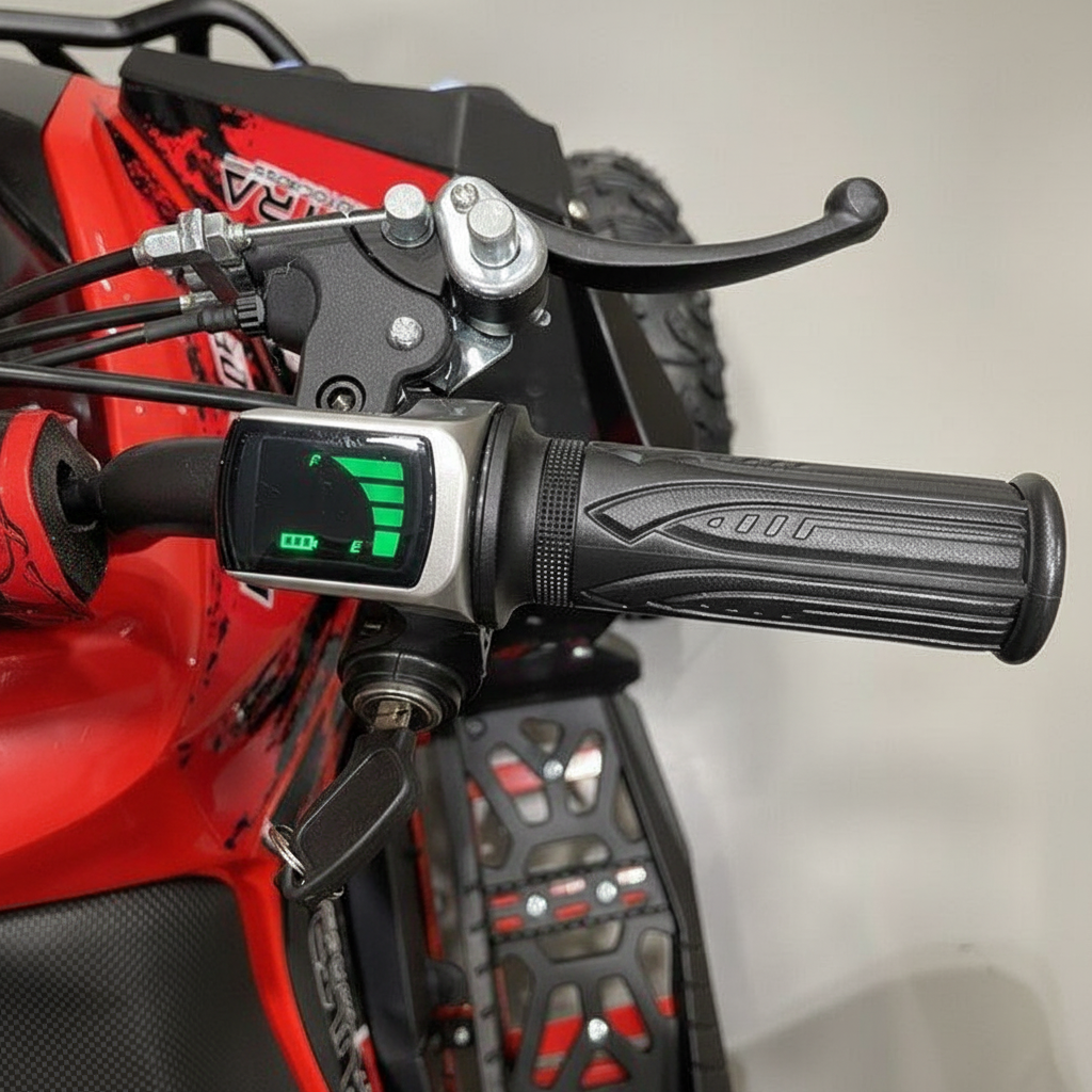 Deze 1000 watt brushless kinderquad van CarKiddo behoort tot de meest krachtige kinderquads uit ons assortiment. De brushless motoren staan bekend om hun extreem lange levensduur en ongekende vermogen, deze motoren hebben 40 tot 50% meer vermogen dan de standaard motoren. Deze kinderquad is elektrisch en in meerdere kleuren beschikbaar. Deze elektrische kinderquad 48v beschikt over een enorm vermogen en een accu met een super lange levensduur. Dit in combinatie met het extra stevige metalen frame, de uitstekende vering en de rubberen terreinbanden zorgen ervoor dat deze kinderquad geschikt is voor uiteenlopende soorten terreinen. Hierbij kan deze elektrische kinderquad een gewicht tot maximaal 90 kg aan. Dit is de ideale kinderquad om mee te beginnen voor jouw zoon of dochter.
