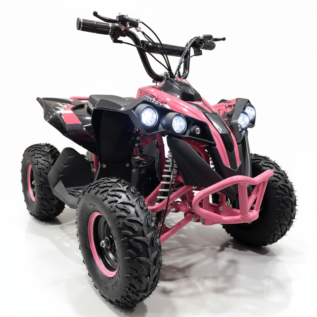 Deze elektrische kinderquad is roze van kleur. Dit ziet er fenomenaal uit. De stoere uitstraling wordt nog eens versterkt dankzij de felle ledverlichting. Bijkomend voordeel van deze verlichting is dat de quad te allen tijde goed zichtbaar is. Deze kinderquad kan zowel voor- als achteruit rijden en het is een fluitje van een cent om deze kinderquad te bedienen. Deze 1000 watt brushless kinderquad heeft ook een neutrale stand. De maximale snelheid van deze elektrische kinderquad is 30 km/u. Je kunt de maximale snelheid ook instellen op 5 km/u of 15 km/u met behulp van de uitneembare sleutel. Zo behoud je als ouder zelf de controle.