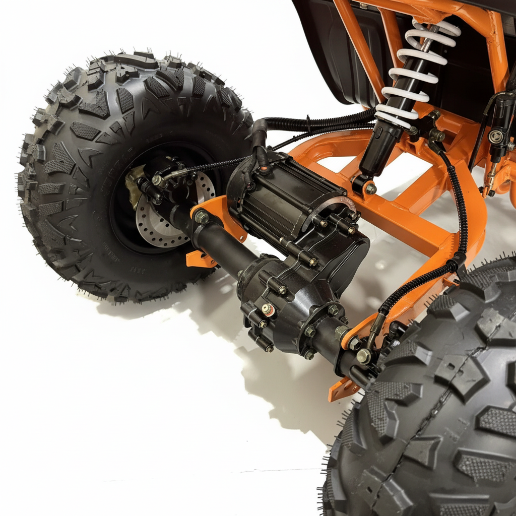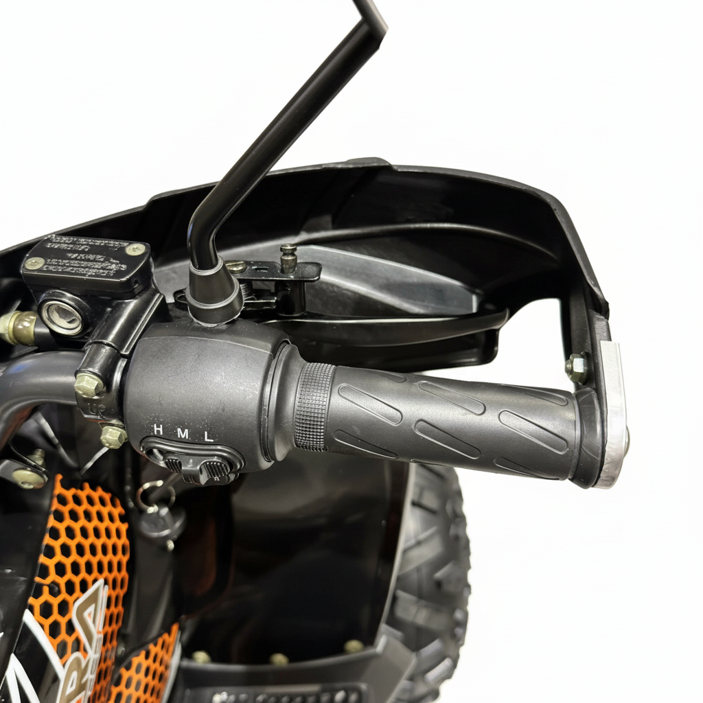 Deze elektrische kinderquad is oranje van kleur. Dit ziet er fenomenaal uit. De stoere uitstraling wordt nog eens versterkt dankzij de felle ledverlichting. Bijkomend voordeel van deze verlichting is dat de quad te allen tijde goed zichtbaar is. Deze kinderquad kan zowel voor- als achteruit rijden en het is een fluitje van een cent om deze kinderquad te bedienen. Deze 1500 watt brushless kinderquad met boost functie tot circa 4500W heeft ook een neutrale stand. De maximale snelheid van deze elektrische kinderquad is 45 km/u. Je kunt de maximale snelheid ook instellen op 8 km/u of 25 km/u met behulp van de standen.