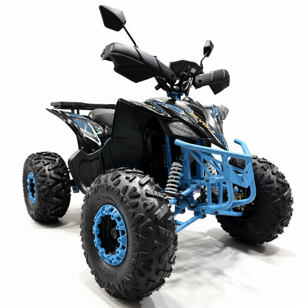 Deze 1500 watt brushless kinderquad van CarKiddo behoort tot de meest krachtige kinderquads uit ons assortiment. De brushless motoren staan bekend om hun extreem lange levensduur en ongekende vermogen, deze motoren hebben 40 tot 50% meer vermogen dan de standaard motoren. Tevens is de quad voorzien van hydraulische remmen op elk wiel. Deze kinderquad is elektrisch en in meerdere kleuren beschikbaar. Deze elektrische kinderquad 60v beschikt over een enorm vermogen en een accu met een super lange levensduur. Dit in combinatie met het extra stevige metalen frame, de uitstekende vering en de rubberen terreinbanden zorgen ervoor dat deze kinderquad geschikt is voor uiteenlopende soorten terreinen. Hierbij kan deze elektrische kinderquad een gewicht tot maximaal 110 kg aan. Dit is de ideale kinderquad voor jouw zoon of dochter.