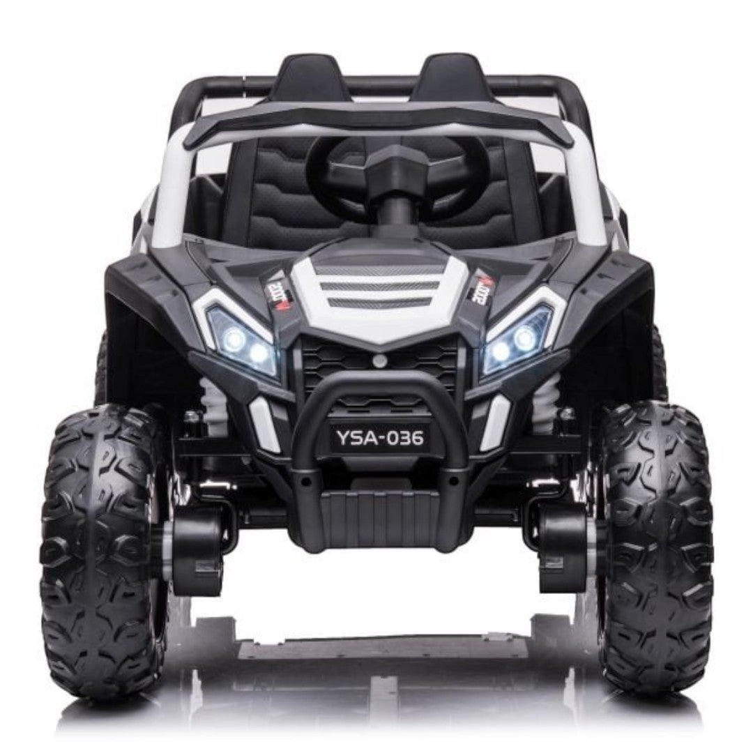 Deze kinderauto is een iets compactere variant van de 2-persoons buggy's, die ook bij ons verkrijgbaar zijn. De extra grote banden van dit model worden gecombineerd met vierwielaandrijving en vier veringen, waarbij ieder wiel er van één voorzien is. Dit alles maakt deze robuuste kinderbuggy Mercedes voor off road rijden. Dit model kan alles aan, of het nu gaat om rijden op het asfalt of in stug zand. Dankzij de 3-puntsgordel ben je er zeker van dat jouw kindje veilig in de kinderauto zit. Daarnaast is er de verlichting voor en achter, plus een lichtbar, waardoor deze buggy te allen tijde goed zichtbaar is.