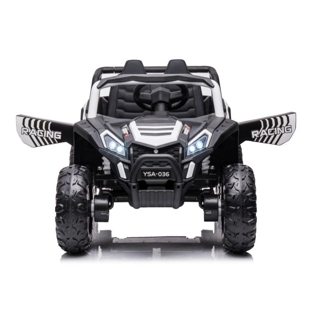 Met een maximum snelheid van 6 km/h is dit de ideale kinderauto voor jonge kinderen. Bovendien behoud je als ouder altijd de controle dankzij de meegeleverde afstandsbediening. Extra leuk is het feit dat deze kinderauto voorzien is van een MP3 spelers met USB, FM radio, bluetooth en AUX aansluiting. Zo kan je kindje tijdens het rijden altijd luisteren naar zijn of haar favoriete muziek. De stoere kleurencombinatie voorziet deze kinderauto van een strak en cool uiterlijk. Deze 1,5-persoons elektrische buggy heeft een extra grote 12V accu. Zo kan er lang gereden worden zonder dat de kinderauto opgeladen hoeft te worden.
