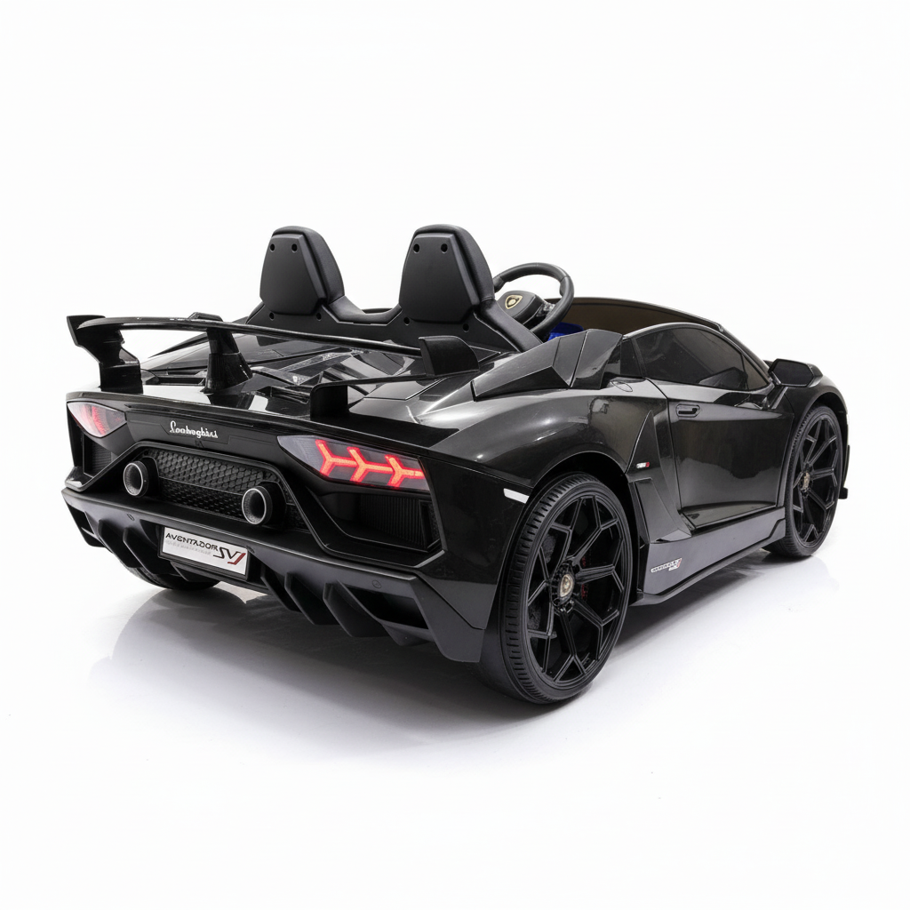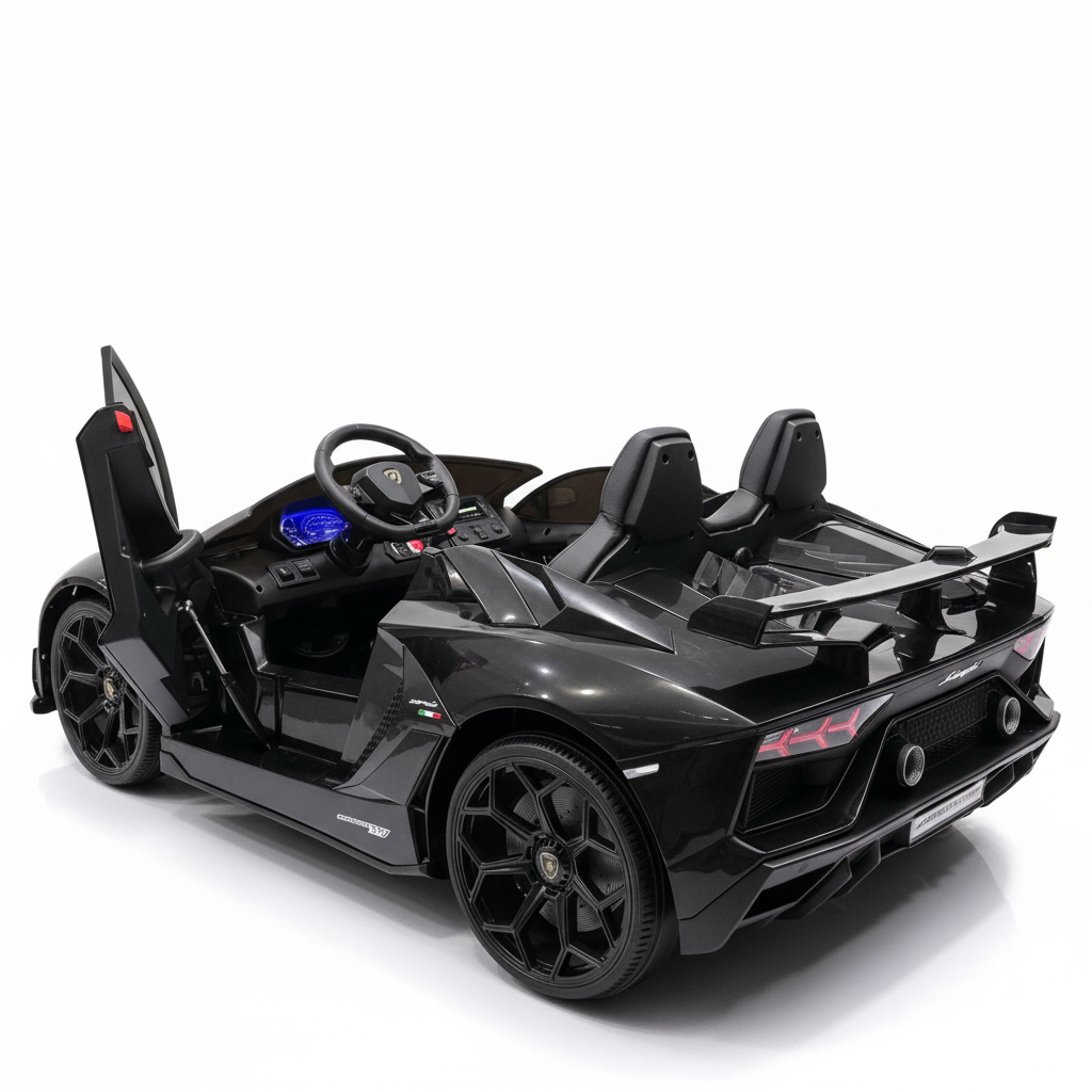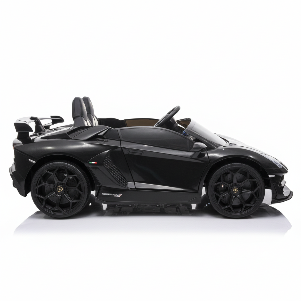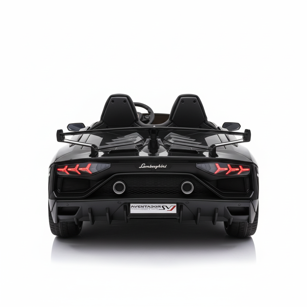 Deze Lamborghini Aventador SVJ is een 2-persoons kinderauto. Je kindje kan dus samen met iemand anders in deze auto rijden. Het maakt niet uit of het gaat om een broertje, zusje, vriendje, vriendinnetje, neefje of nichtje. De één rijdt terwijl de ander de passagier is. Samen spelen wordt op deze manier leuker dan ooit. Opvallend aan dit model zijn de mooie Butterfly deuren, de LED verlichting voor en achter, de comfortabele en verstelbare stoelen van leer en de twee heupgordels. Daarnaast wordt het rondrijden in deze Lamborghini kinderauto nog leuker dankzij de MP3-speler met Bluetooth en een AUX-ingang.