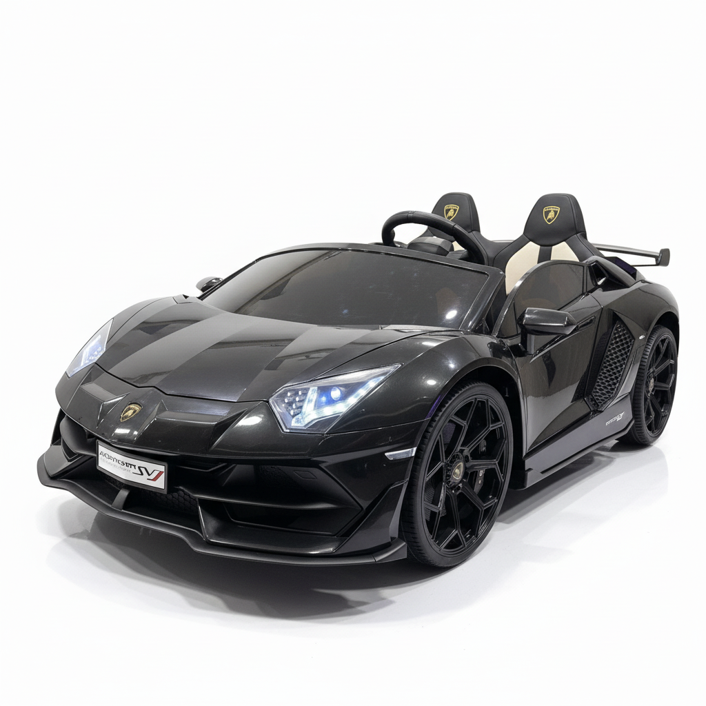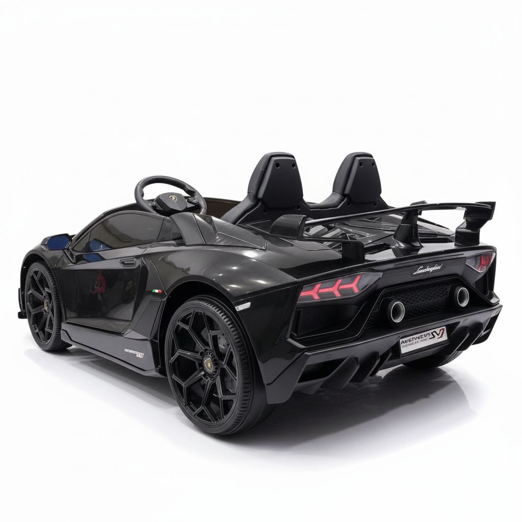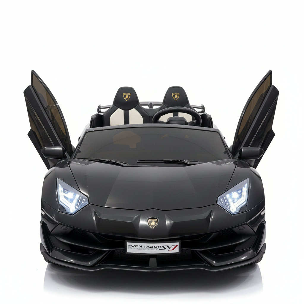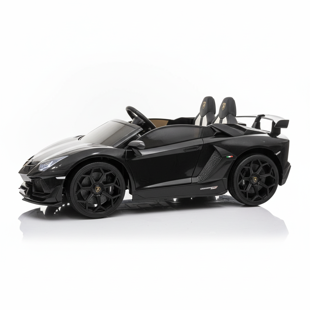 Deze Lamborghini Aventador SVJ is een 2-persoons kinderauto. Je kindje kan dus samen met iemand anders in deze auto rijden. Het maakt niet uit of het gaat om een broertje, zusje, vriendje, vriendinnetje, neefje of nichtje. De één rijdt terwijl de ander de passagier is. Samen spelen wordt op deze manier leuker dan ooit. Opvallend aan dit model zijn de mooie Butterfly deuren, de LED verlichting voor en achter, de comfortabele en verstelbare stoelen van leer en de twee heupgordels. Daarnaast wordt het rondrijden in deze Lamborghini kinderauto nog leuker dankzij de MP3-speler met Bluetooth en een AUX-ingang.