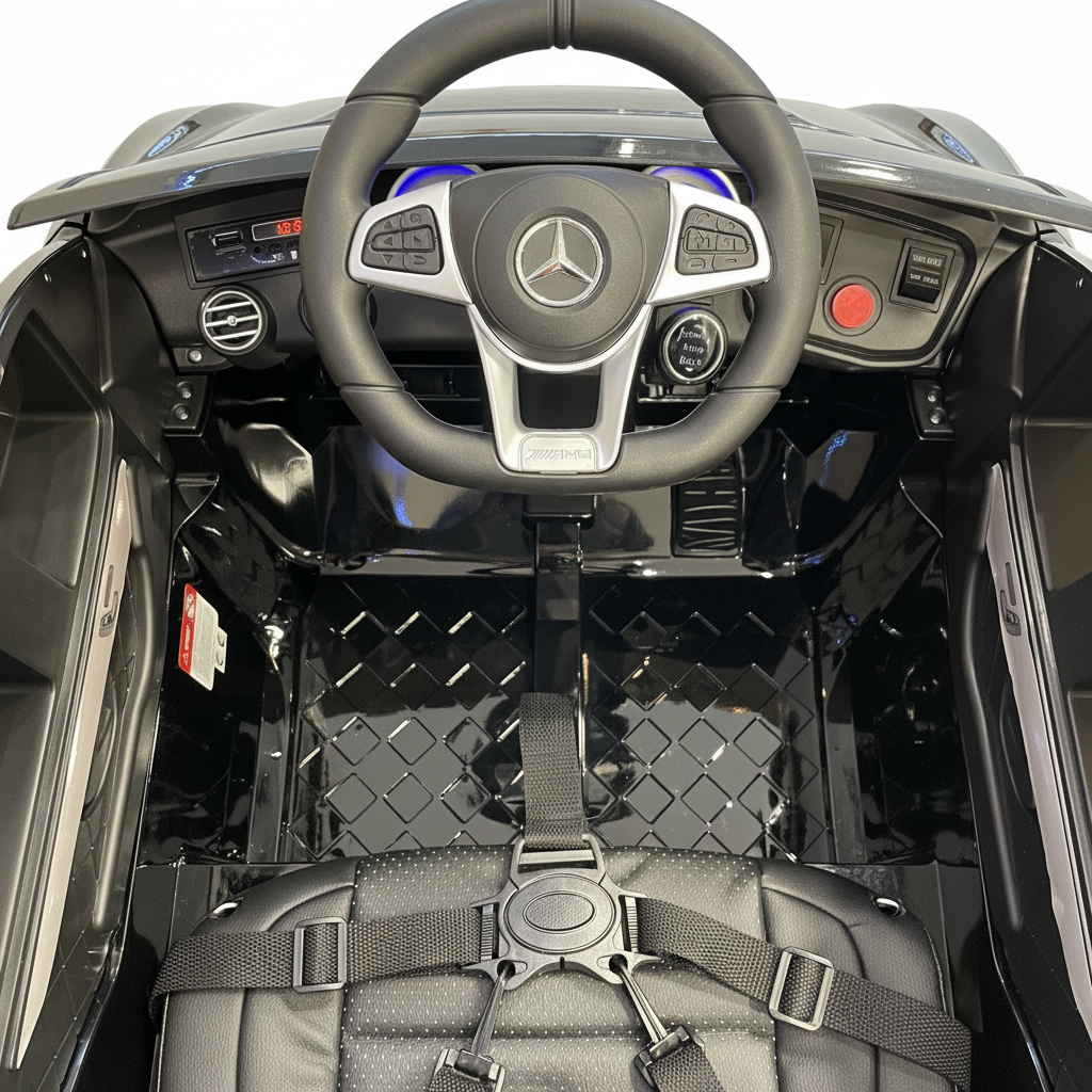 Iedere kinderauto beschikt over een afstandsbediening die ervoor zorgt dat u als ouder het autootje kunt besturen. Ook kunnen de kinderen de kinderauto besturen. Tijdens het rijden kan uw kind genieten van de leukste liedjes en verhaaltjes die uit de MP3 speler komt. U kunt er ook voor kiezen uw eigen muziek af te spelen doormiddel van de USB of AUX aansluiting. De kinderauto beschikt ook over mooie LED verlichting en een comfortabele leren stoel. Voor de veiligheid kunt u uw kind vastmaken doormiddel van een gordel die je kunt afstellen. De Mercedes GLC63s AMG kinderauto beschikt over een multifunctionele stuur met claxon geluid. Verder beschikt de kinderauto over mooi sport geluid bij het starten en gas geven.