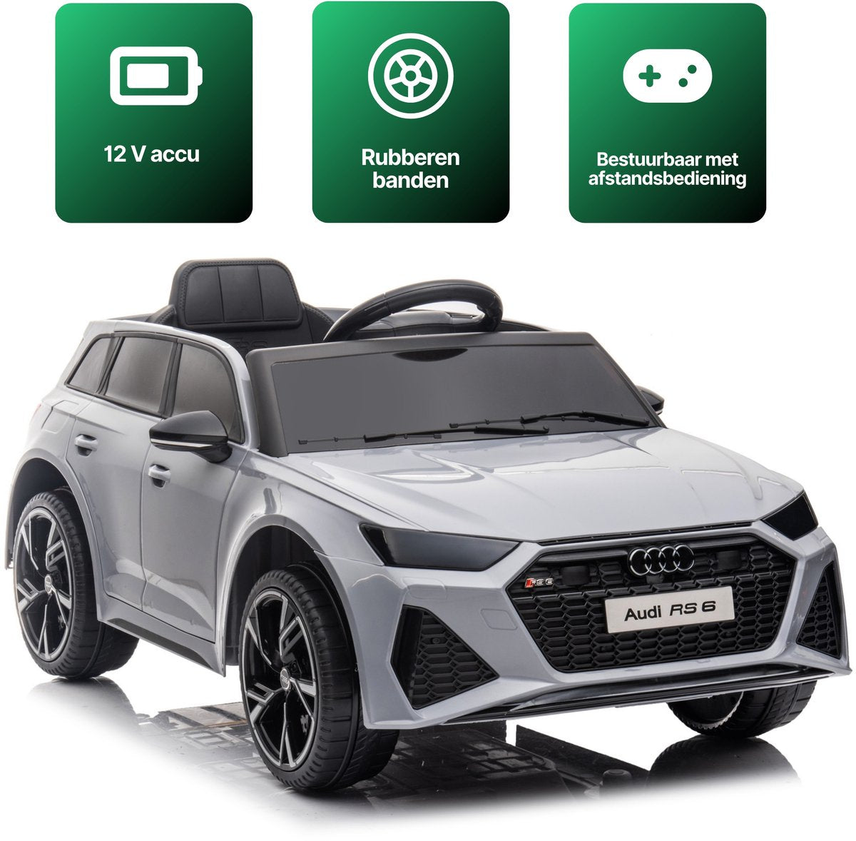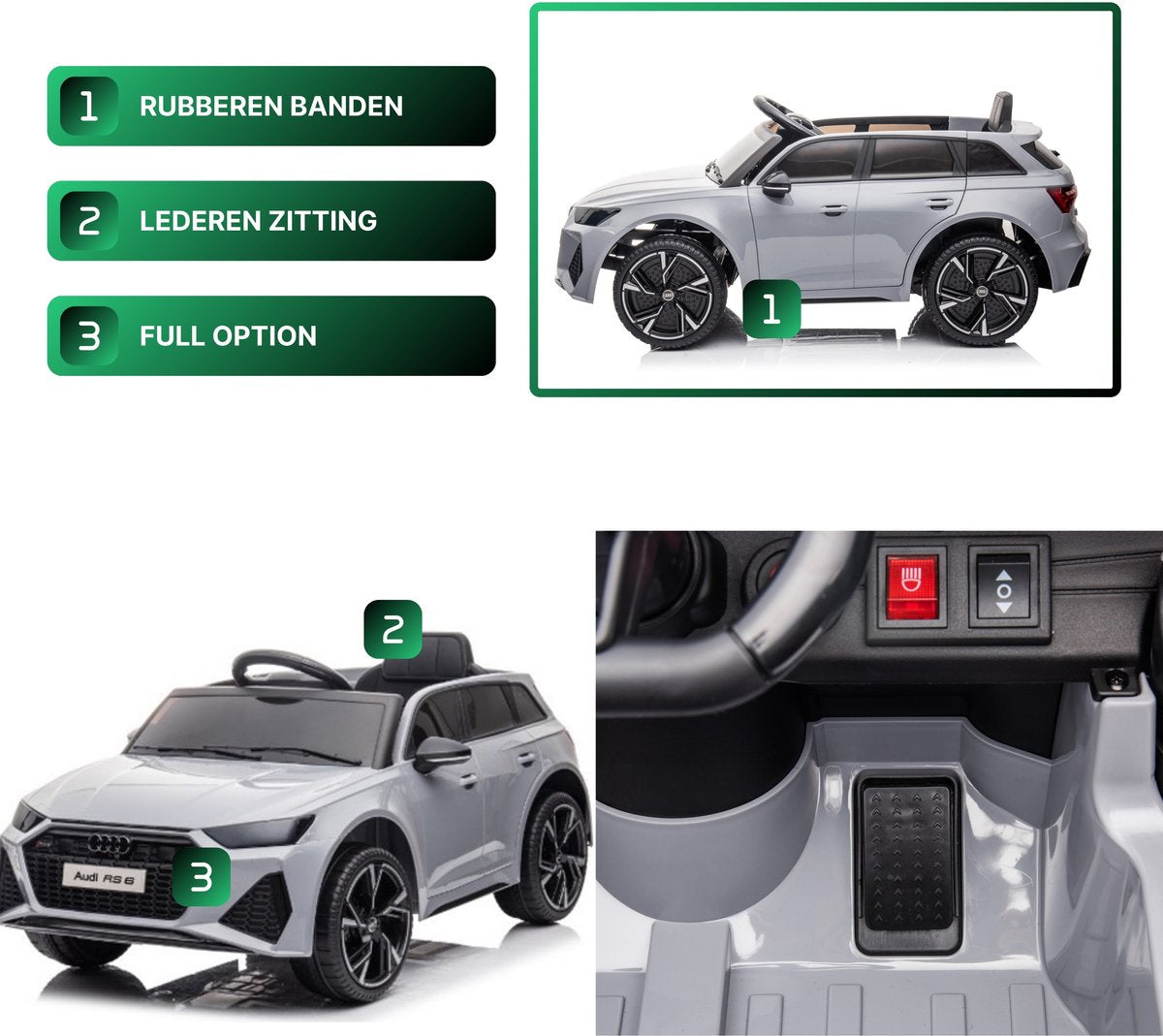 De officieel gelicenteerde Audi RS6 kinderauto is een mooie kinderauto om te zien. De Audi RS6 elektrische kinderauto beschikt over leuke opties waaronder authentieke LED-verlichting, een comfortabele lederen stoel en voor een extra comfortabele rit beschikt deze elektrische kinderauto over stevige rubberen banden en vering. De stevige banden zorgen ervoor dat de auto buiten ook op verschillende soorten ondergronden te rijden is.