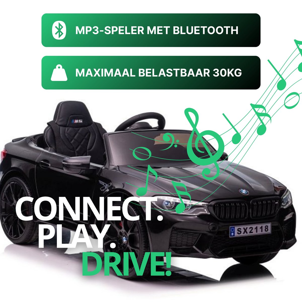 Met een maximale snelheid van 8 km/h, en twee snelheidsstanden in totaal, hoef je jezelf geen zorgen te maken dat deze BMW M5 kinderauto te snel kan gaan. Bovendien wordt een afstandsbediening meegeleverd, zodat je ook als ouder handmatig de auto kunt besturen. De verstelbare leren stoel zorgt ervoor dat je kindje fijn kan zitten. De stoel is voorzien van een 5-puntsgordel. Iedere rit wordt een feestje dankzij de ingebouwde MP3-speler. Deze accessoire is voorzien van Bluetooth, USB en een AUX ingang. Tijdens het rijden kan er geluisterd worden naar muziek en verhaaltjes.