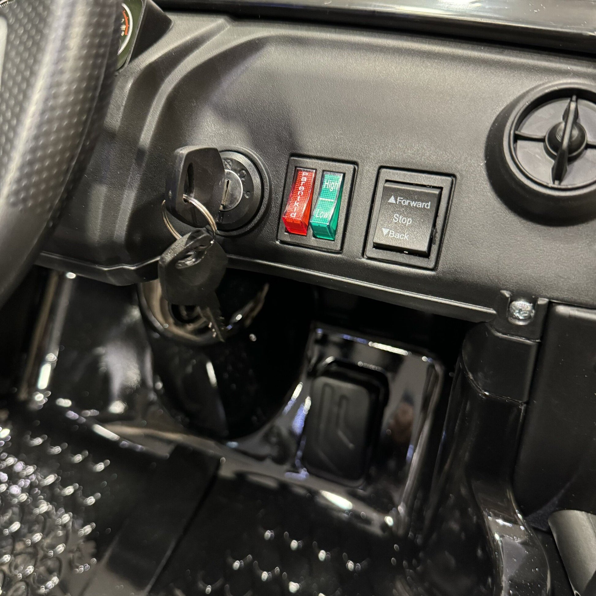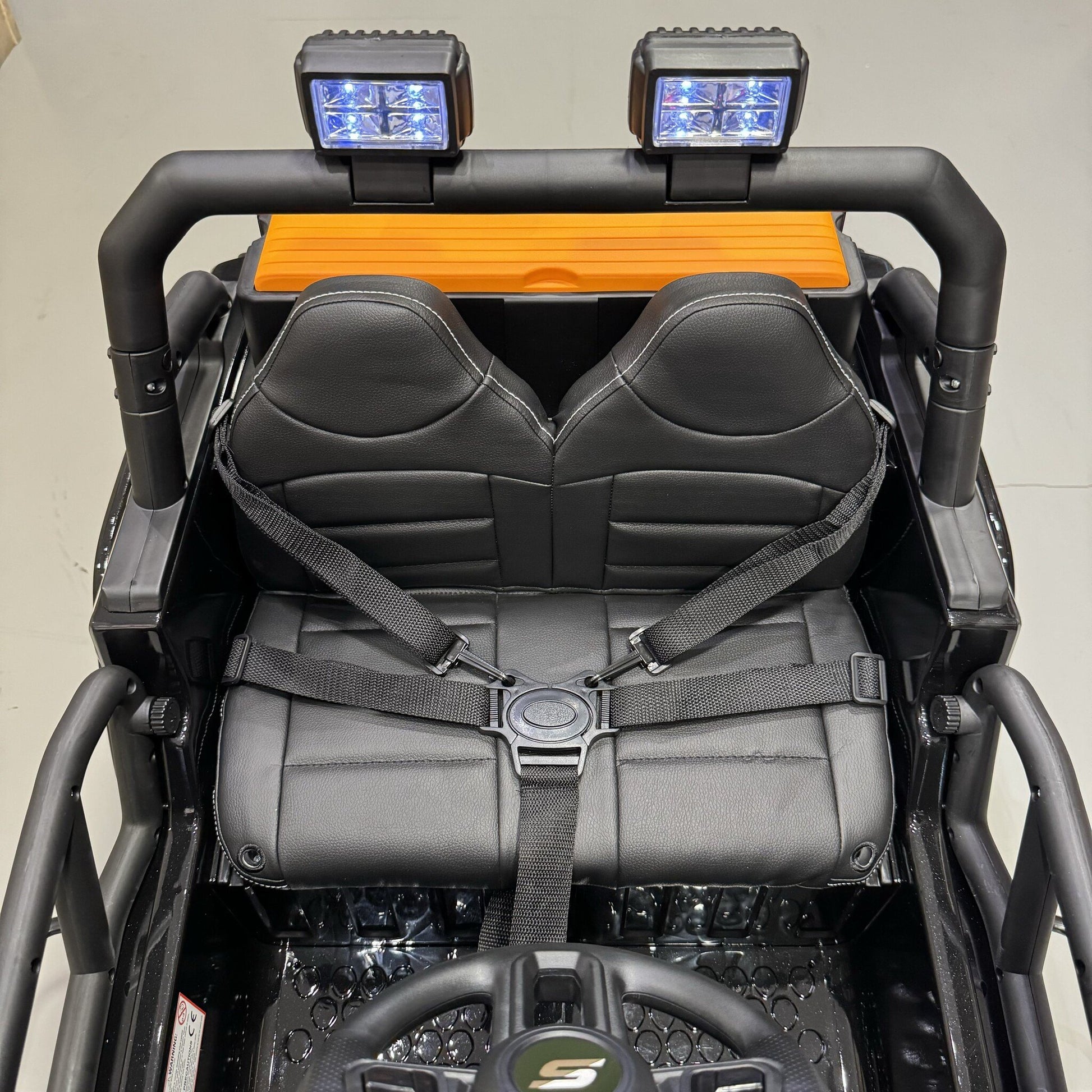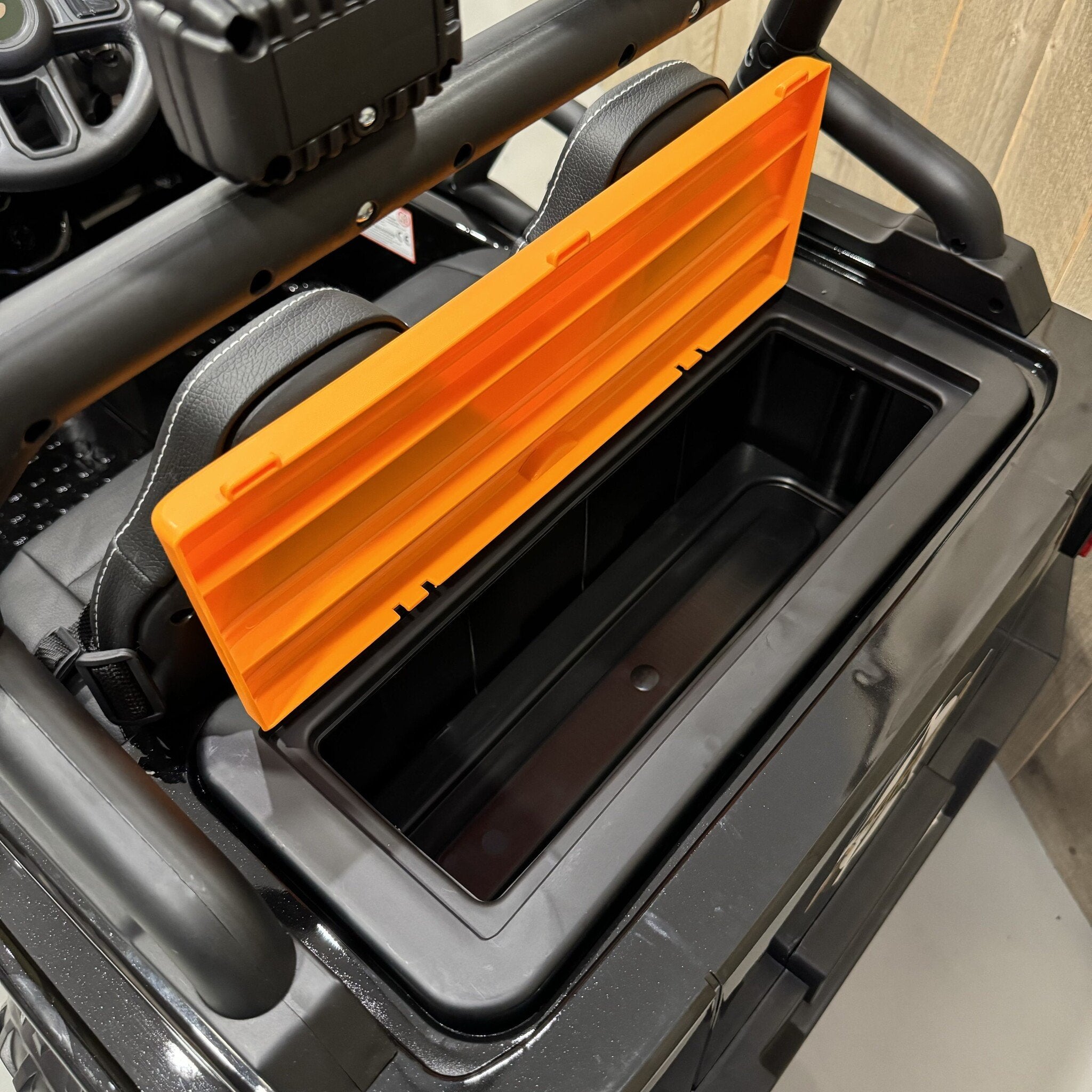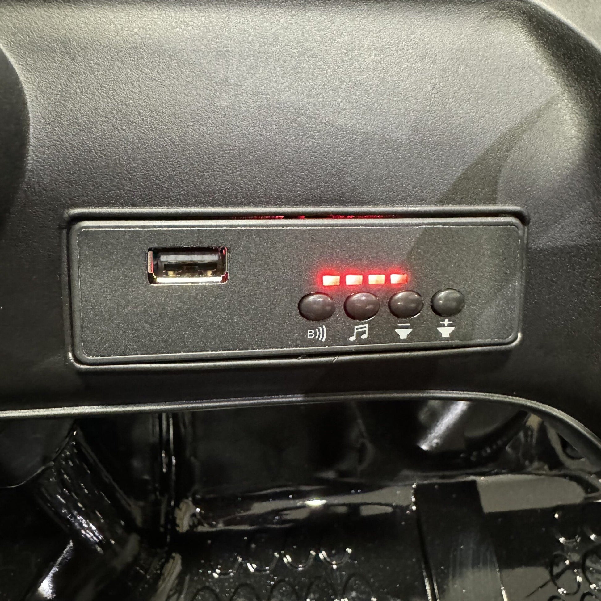 Deze Gladiator kinderjeep beschikt over opbergruimte. Je kindje kan hierdoor bijvoorbeeld een knuffel of ander speelgoed meenemen voor onderweg. Voor en achter is dit model van Ledverlichting voorzien, zodat de kinderjeep ook in het donker goed zichtbaar blijft. De prachtig glanzende zwart metallic lak met oranje accenten maakt dit tot één van de mooiste kinderauto’s van dit moment. Een sleutel, die je kunt gebruiken om de jeep te starten, wordt meegeleverd. Tijdens het cruisen kan jouw kindje luisteren naar liedjes en verhaaltjes dankzij de ingebouwde MP3 speler.