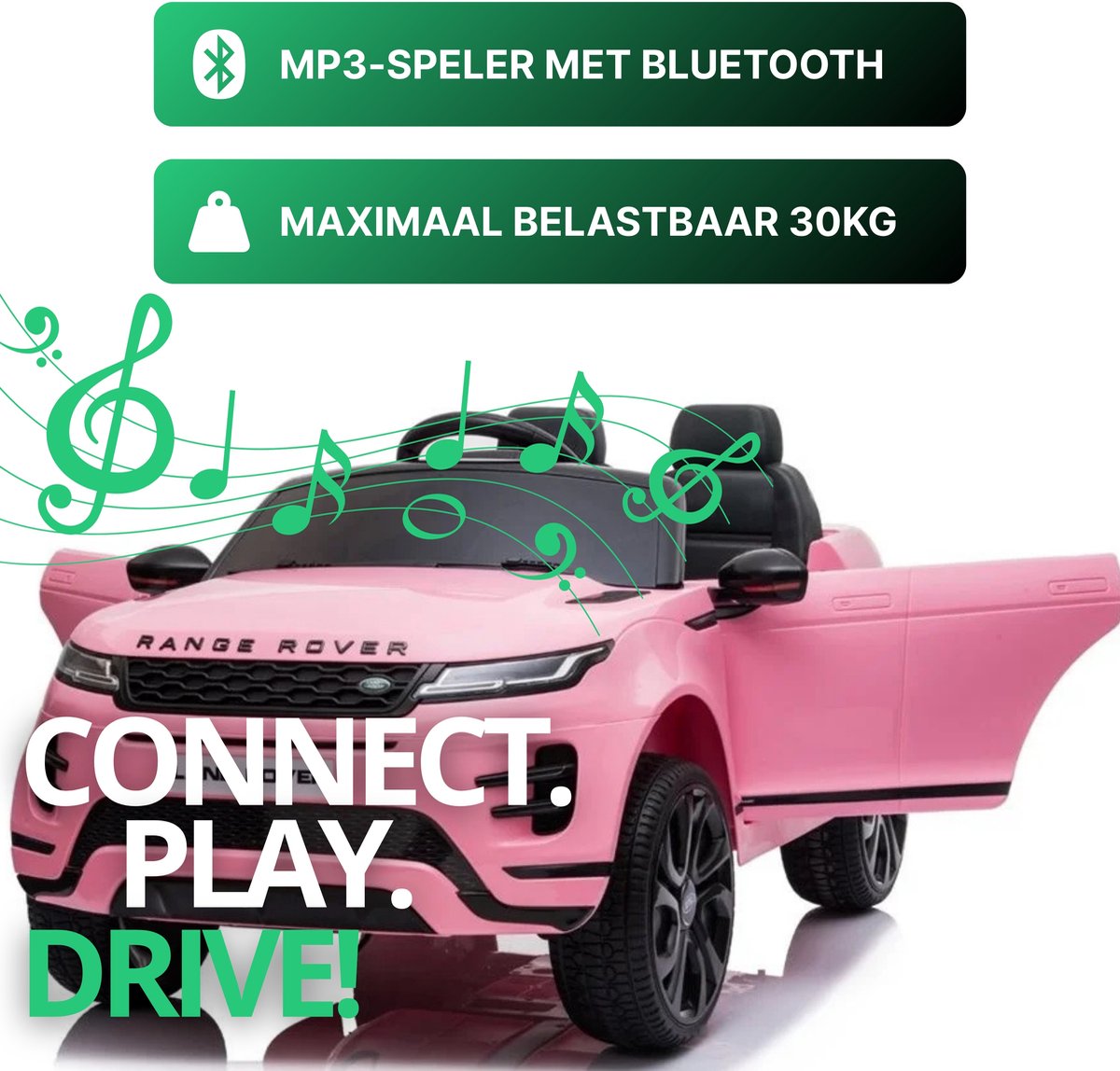 De Range Rover Evoque kinderauto beschikt over rubberen banden, dit zorgt voor een comfortabele rit. Daarnaast beschikt deze kinderauto over een mooie bijpassende leren stoel. De stoel is uitgerust met een gordel die je gemakkelijk kunt afstellen.