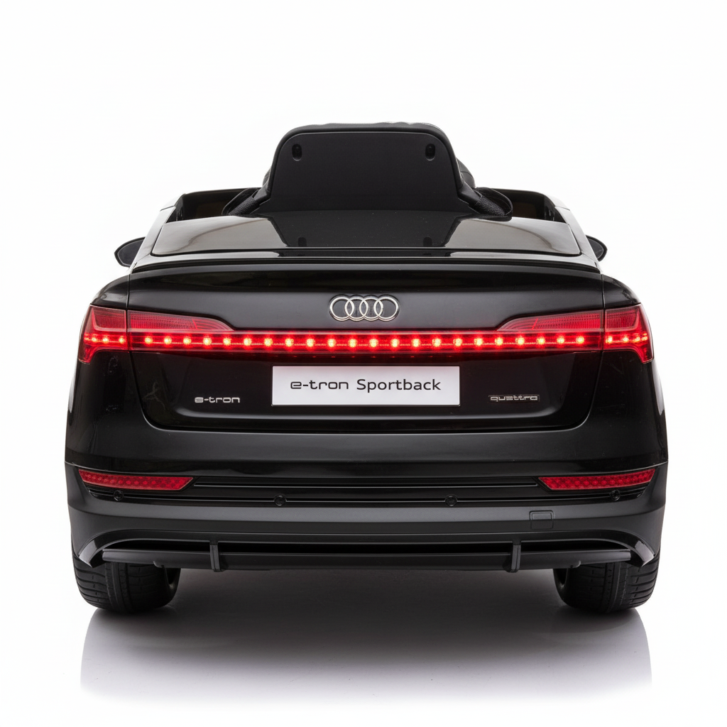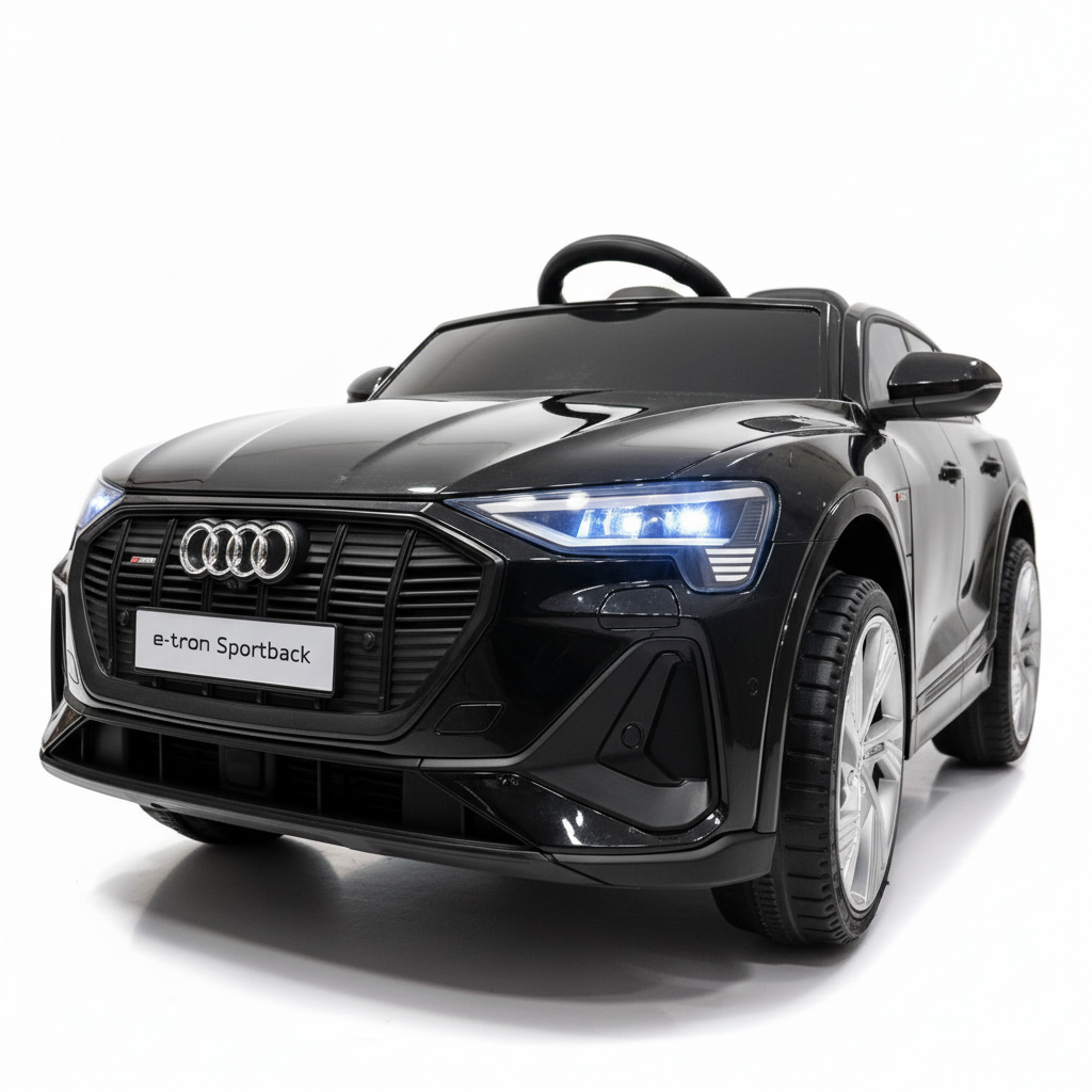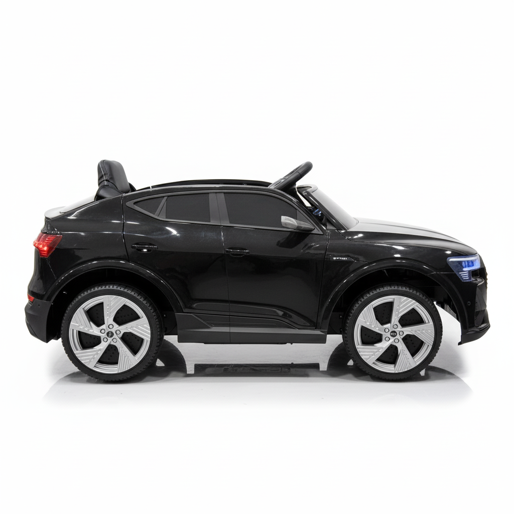 De Audi E-tron! Deze stoere kinderauto is een mooie kinderauto om te zien en lijkt sprekend op de grote echte E-tron! Dankzij zijn strakke lijnen, Led-verlichting en metallic zwarte lak is dit één van de stoerste kinderauto's!