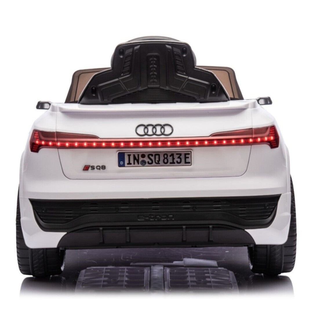 De officieel gelicenteerde Audi SQ8 kinderauto is een mooie kinderauto om te zien. De Audi SQ8 elektrische kinderauto beschikt over leuke opties waaronder authentieke LED-verlichting, een comfortabele stoel en voor een extra comfortabele rit beschikt deze elektrische kinderauto over stevige rubberen banden en vering. De stevige rubberen banden zorgen ervoor dat de auto buiten ook op verschillende soorten ondergronden te rijden is.