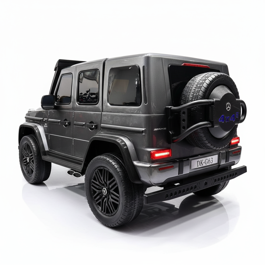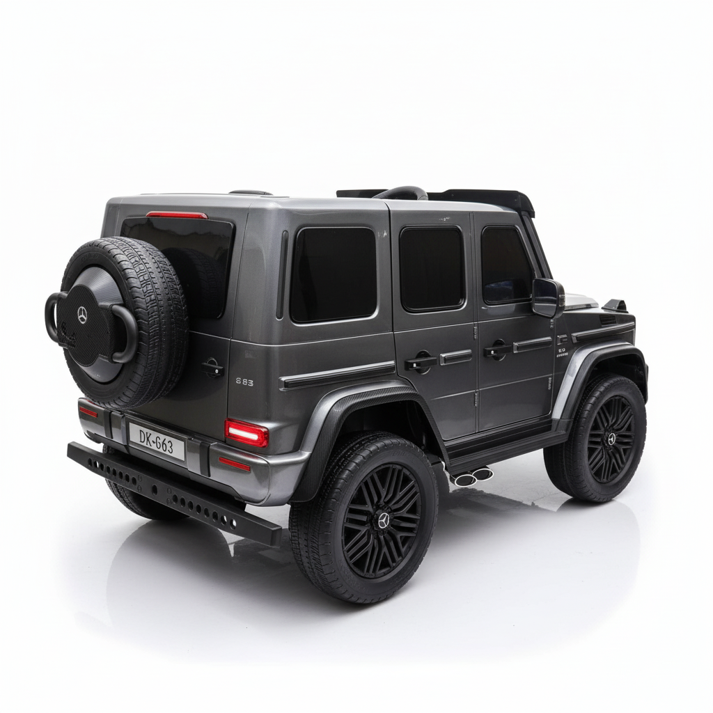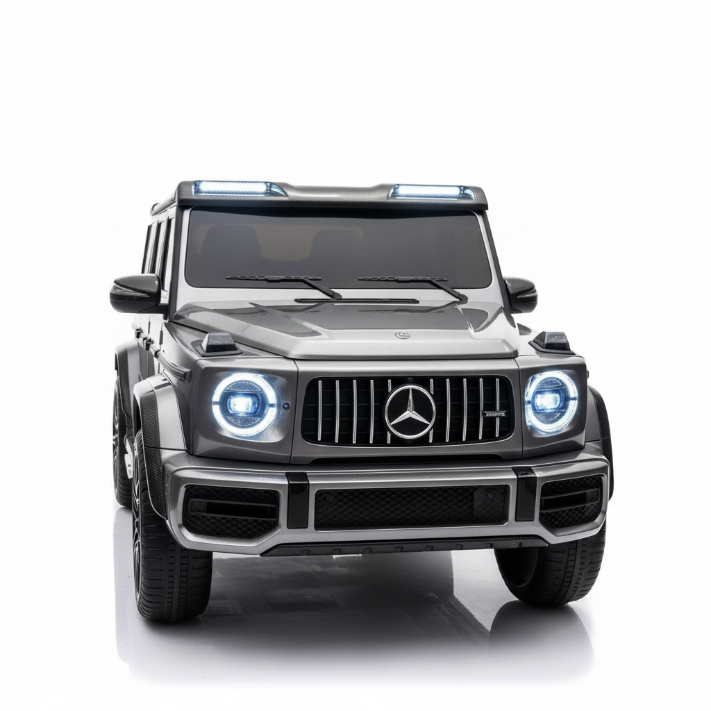 Met deze grijze Mercedes G63 kinderauto maak je indruk. Dit 2-persoons model is voorzien van voor en achter verlichting, soft start en een claxon. Hierdoor is deze kinderauto altijd zichtbaar en hoorbaar. Je kindje zal ongelofelijk blij zijn met dit cadeau. Daarom koop je deze G-wagon Elektrische Kinderauto metallic-zwart bij CarKiddo. Extra leuk is dat je een kenteken op maat kan laten maken, bijvoorbeeld met de naam van je kindje. Liever de kleinere 24V uitvoering van de G63? Kijk dan even hier: Mercedes G63 AMG