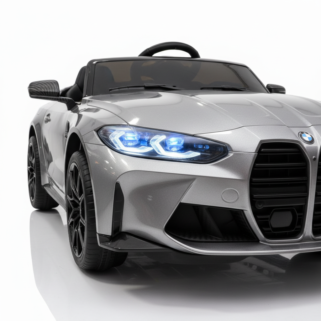Doe jouw kindje deze BMW M4 Elektrische Kinderauto Metallic grijs cadeau