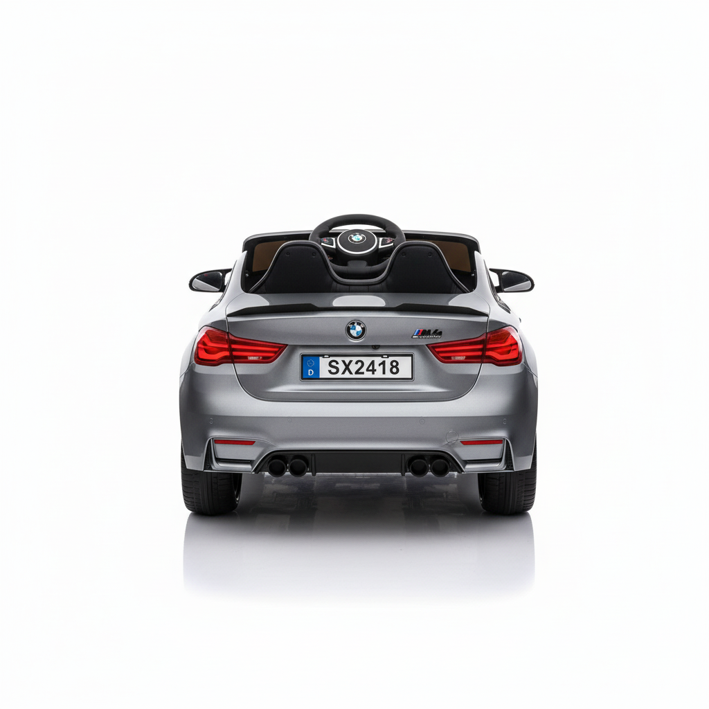Met deze metallic grijze BMW M4 kinderauto maak je indruk. Dit 1-persoons model is voorzien van verlichting, soft start en een claxon. Hierdoor is deze kinderauto altijd zichtbaar en hoorbaar. Je kindje zal ongelofelijk blij zijn met dit cadeau. Daarom koop je deze BMW M4 Elektrische Kinderauto metallic-grijs bij CarKiddo. Extra leuk is dat je een kenteken op maat kan laten maken, bijvoorbeeld met de naam van je kindje.
