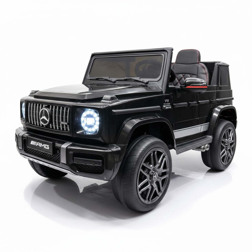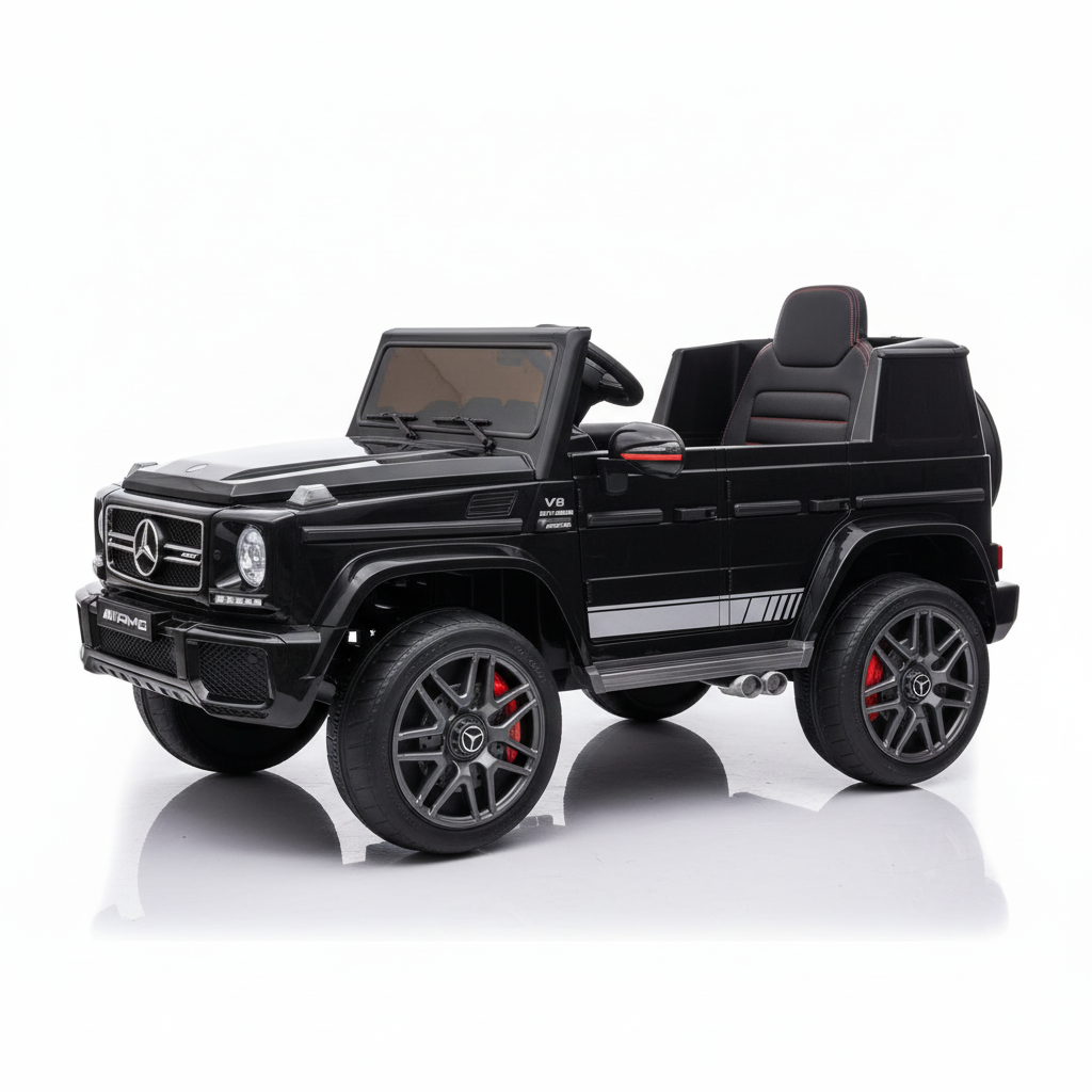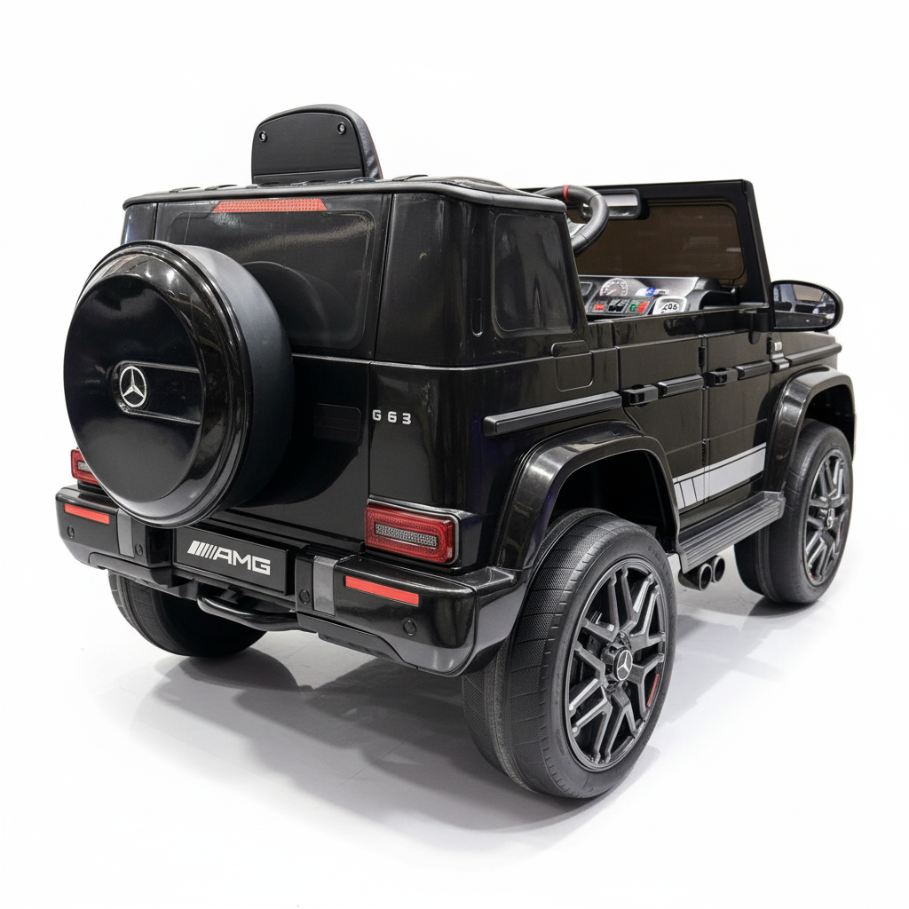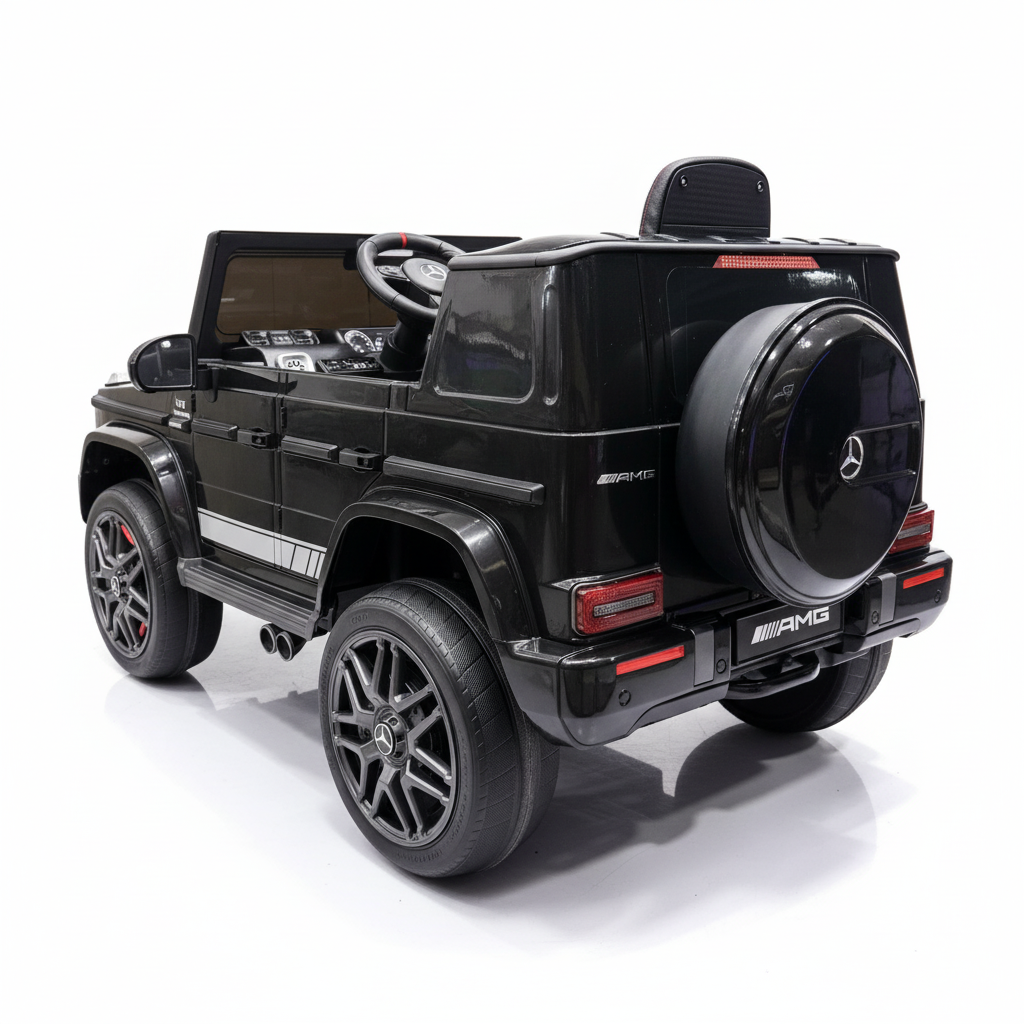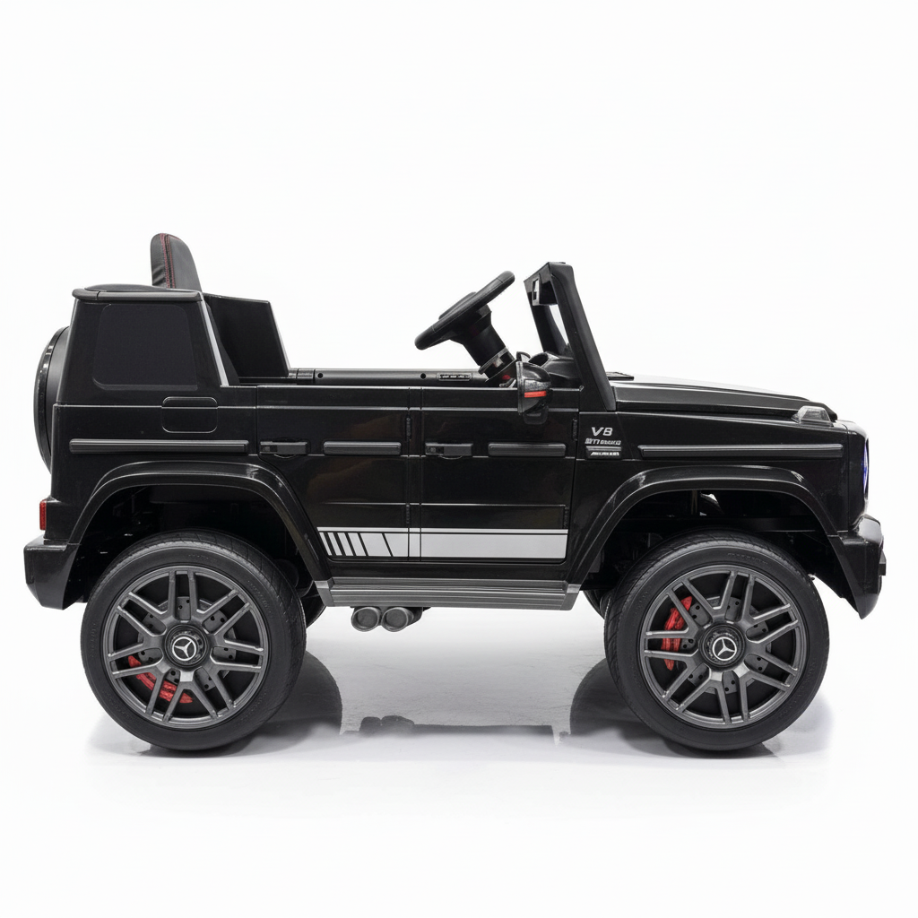 Met deze zwarte Mercedes G63 kinderauto maak je indruk. Dit 1-persoons model is voorzien van verlichting, soft start en een claxon. Hierdoor is deze kinderauto altijd zichtbaar en hoorbaar. Je kindje zal ongelofelijk blij zijn met dit cadeau. Daarom koop je deze G-wagon Elektrische Kinderauto metallic-zwart bij CarKiddo. Extra leuk is dat je een kenteken op maat kan laten maken, bijvoorbeeld met de naam van je kindje. Liever de kleinere 12V uitvoering van de G63? Kijk dan even hier: Mercedes G63 AMG
