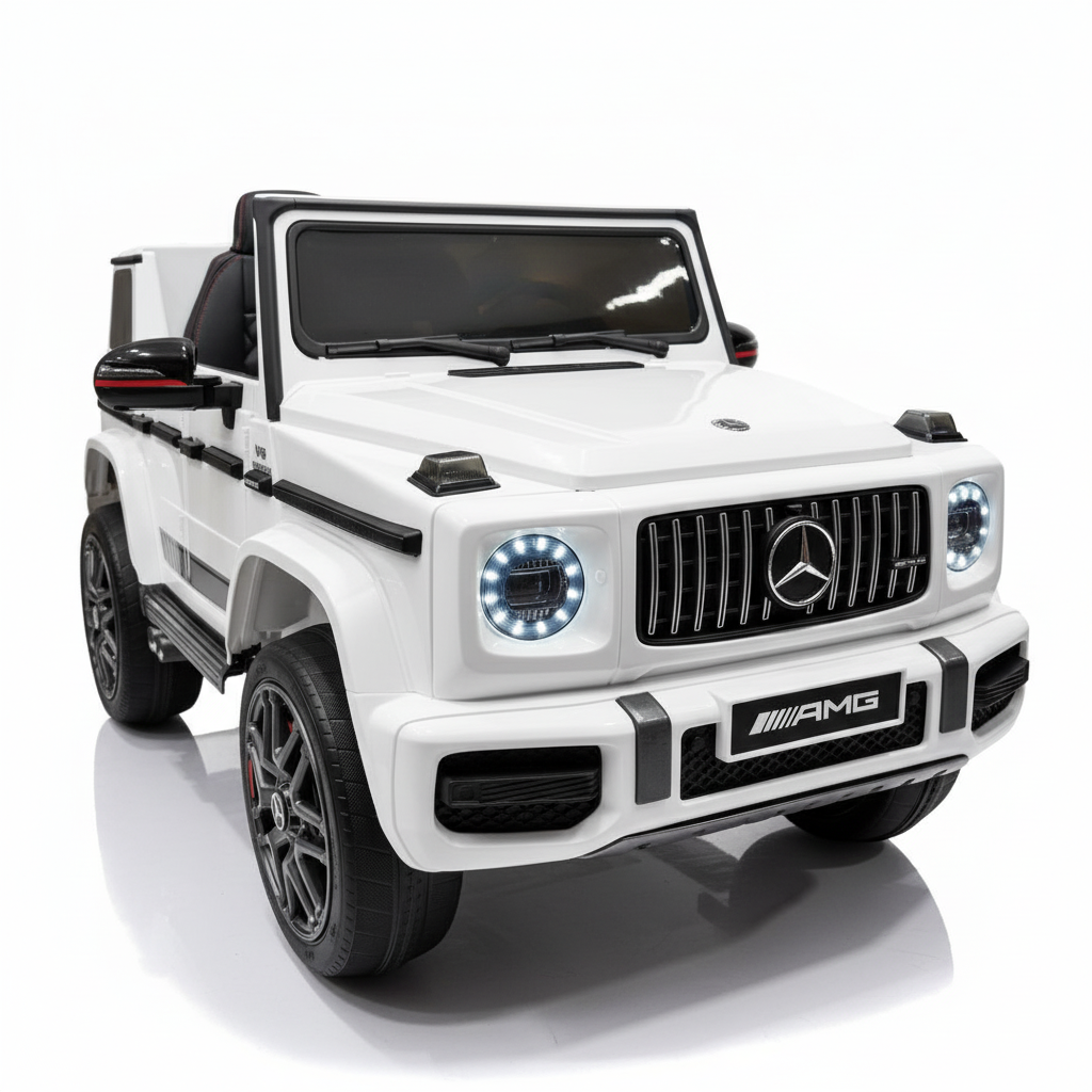 Nieuw  bij CarKiddo de populaire Mercedes-Benz G63 AMG in een extra grote formaat, 24V accu en 4x4. Met zijn 24V accu en vierwielaandrijving is deze Mercedes G63 AMG Elektrische Kinderauto een model dat in het oog springt. Wellicht vraag je jezelf af: in welke mate is dit een echte Mercedes auto? Deze kinderauto heeft een officiële licentie en is dus een echte Mercedes AMG kinder auto. Rijd je zelf in een Mercedes, dan is het extra leuk om je kindje een Mercedes G63 24V cadeau te doen. Dan kan hij of zij in dezelfde auto als papa en mama rijden. Voor een kind spreekt dit enorm tot de verbeelding. Maar deze elektrische kinderauto van Mercedes beschikt over meer eigenschappen die dit model een aankoop waard maken. Let op dit model is dus grote dan de standaard 12V G63 AMG.