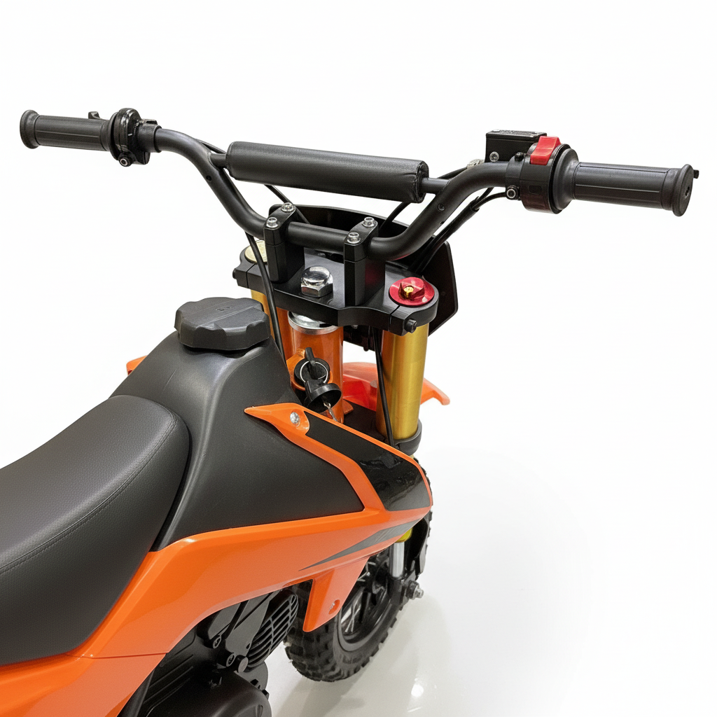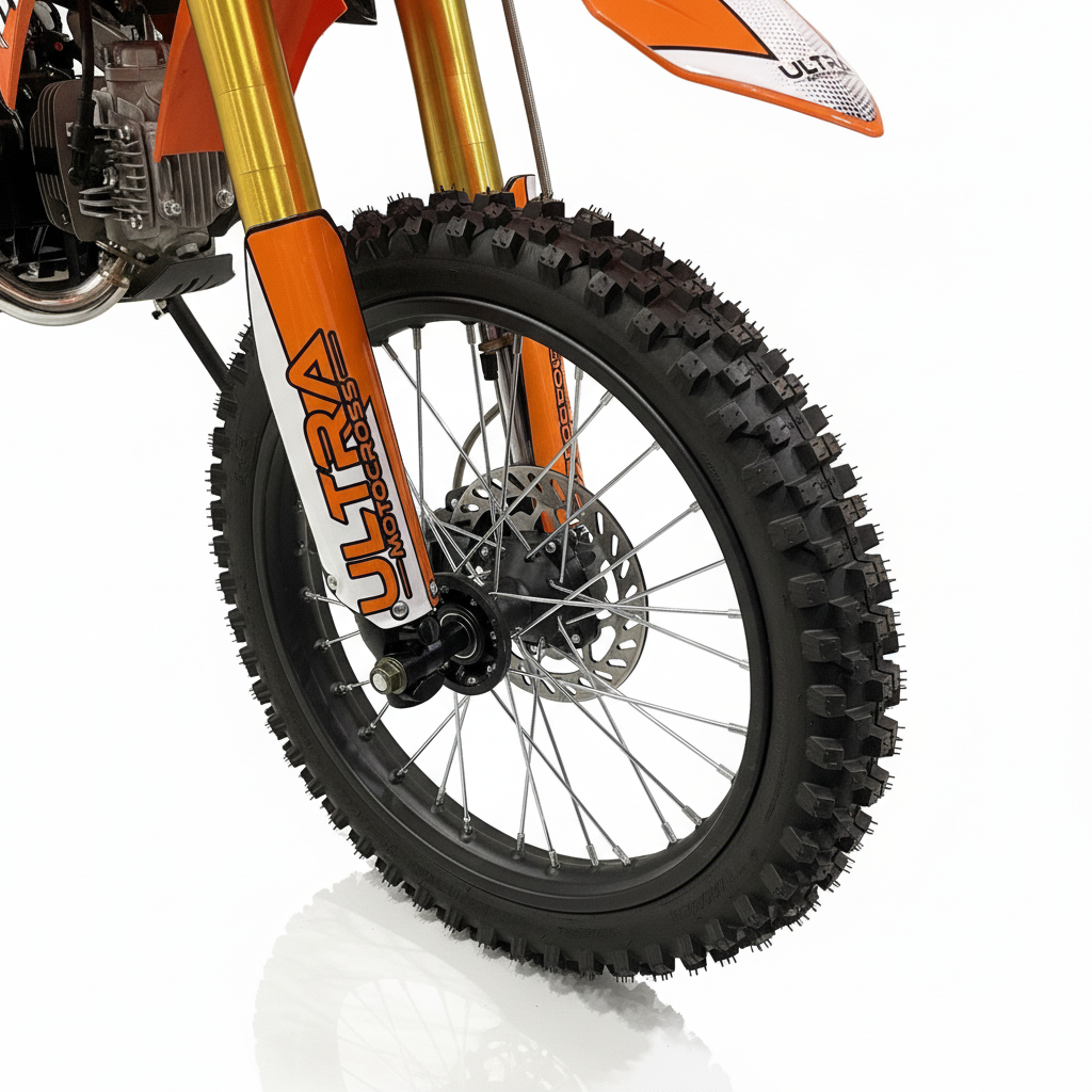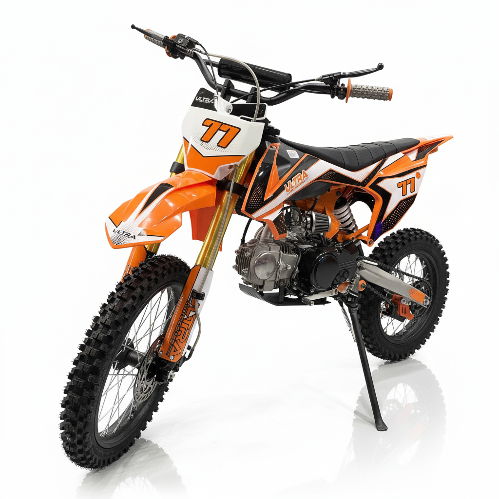 Het frame van deze crosser staat als een huis dit komt doordat de frame is vervaardigd uit chromoly staal, dit is hetzelfde materiaal als dat word gebruikt voor het maken van rolkooien in professionele race auto's. Hierdoor is de frame bijna onverwoestbaar! Combineer dat met de uitstekend werkende veringen, vermogen, betrouwbaarheid, uitstraling en je snapt wel waarom dit model tot de meest robuuste crossers van dit moment behoort. Deze pitbike kan opstarten dankzij de kick-starter. De transmissie verloopt doormiddel van de 4 versnellingen op de crosser. Met behulp van fastgrip gashendel kan er gas gegeven worden.