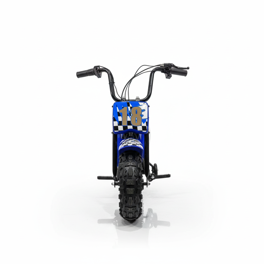 Deze blauwe kindercrosser Monkey wordt gekenmerkt door zijn kracht en comfort. De brushless motor en de accu heeft een inhoud van 24V. Hierdoor heeft dit model genoeg kracht om iedere ondergrond aan te kunnen, hoe ruw het terrein ook is. Andere eigenschappen die hieraan bijdragen zijn de rubberen luchtbanden en het extra stevige metalen frame. Je zou met deze blauwe elektrische kindercross bike kunnen gaan veldrijden. Zo ruim zijn de mogelijkheden als je voor dit kindervoertuig kiest. We overdreven niet toen we zeiden dat dit de ultieme kindermotor voor de kleinste van dit moment is. Ontdek zelf waarom.