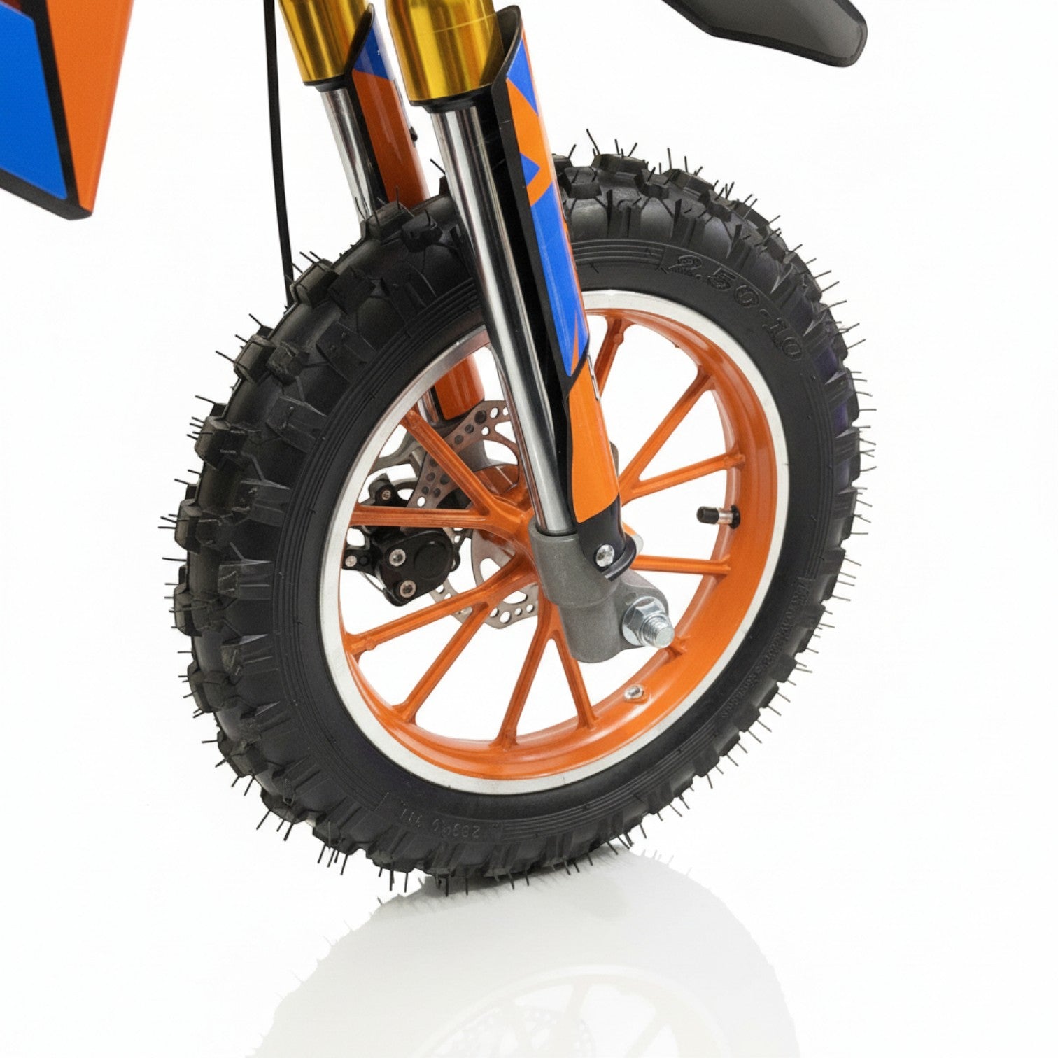 Hierboven stipten we al aan dat deze elektrische kindercrosser beschikt over een vermogen van in totaal 1000 watt. Dit hoge vermogen wordt gecombineerd met een accu van 36V. Hoe ruimer de inhoud van een accu is, hoe krachtiger een kindercrosser is. De combinatie van het vermogen en de accu zorgt ervoor dat dit niet alleen een model met een lange levensduur is, maar ook dat deze 1000W kindercrosser geschikt is voor alle terreinen. Van asfalt tot stug zand, dit model is tegen alles bestand. Het vermogen is niet het enige wat hieraan bijdraagt. Ook de extra stevige metalen frame, de formidabele veringen (verstelbaar) en de rubberen banden maken dit model geschikt voor iedere ondergrond. Daarom is dit de ultieme elektrische crosser.