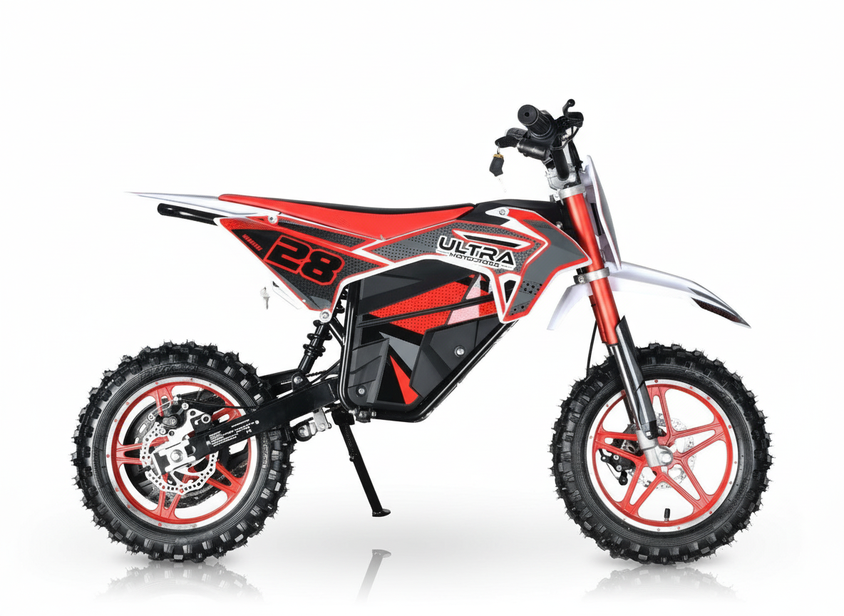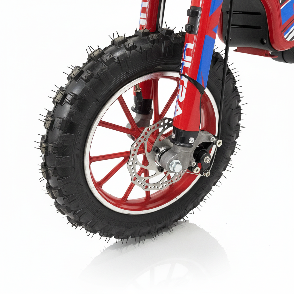 Deze rode kindercrosser wordt gekenmerkt door zijn kracht. Het totale vermogen is 1000 watt en de accu heeft een inhoud van 36V. Hierdoor heeft dit model genoeg kracht om iedere ondergrond aan te kunnen, hoe ruw het terrein ook is. Andere eigenschappen die hieraan bijdragen zijn de rubberen luchtbanden en het extra stevige metalen frame. Je zou met deze rode elektrische kindercrosser kunnen gaan veldrijden. Zo ruim zijn de mogelijkheden als je voor dit kindervoertuig kiest. We overdreven niet toen we zeiden dat dit de ultieme kindercrosser van dit moment is. Ontdek zelf waarom.