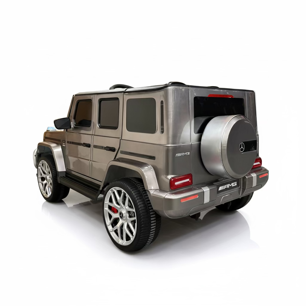 De Mercedes G63 2-persoons beschikt over rubberen banden en een leren stoel. Hierdoor zitten de kinderen extra comfortabel. De 2-persoons Mercedes G63 is extra krachtig en is super leuk om te rijden! De start- en stopknop zorgt voor een unieke ervaring door echte AMG motorgeluiden. Je krijgt bij dit kindervoertuig het gevoel dat je een echte Mercedes AMG start!