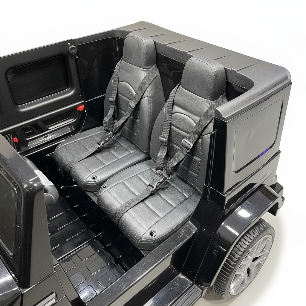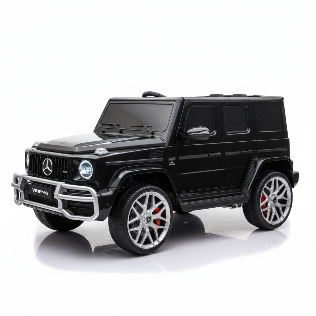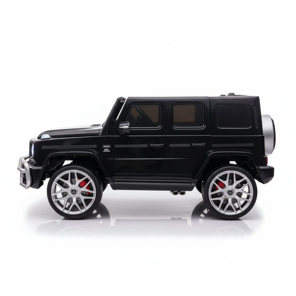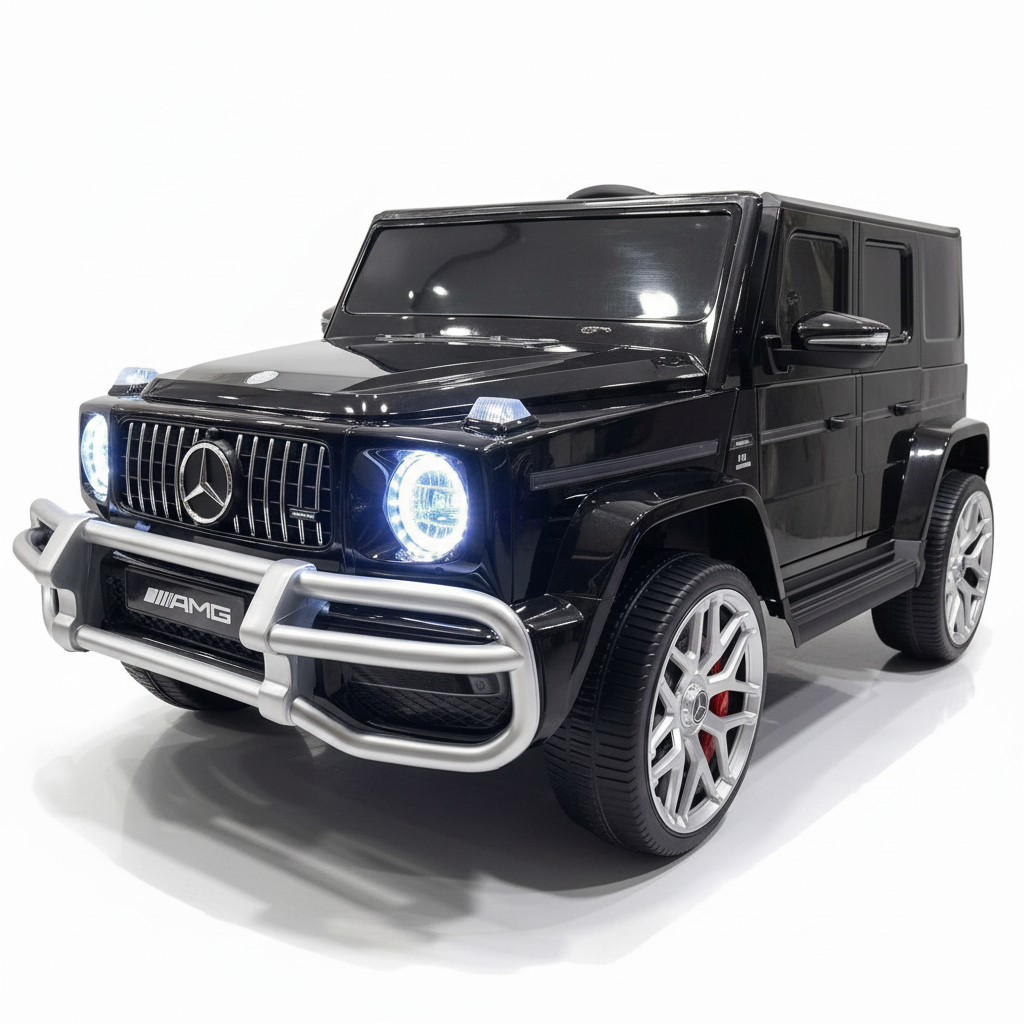 De 2-persoons Mercedes G63 AMG 24 volt kinderauto! De 2-persoons G63 is de grote broer van de 1-persoons variant! Dit model kinderauto beschikt over extra mooie en felle Led-verlichting. Daarnaast beschikt de Mercedes G63 kinderauto over 2 zitplaatsen met aparte gordels! De gespoten zwarte metallic lak maakt dit kindervoertuig één van de mooiste kinderauto's!