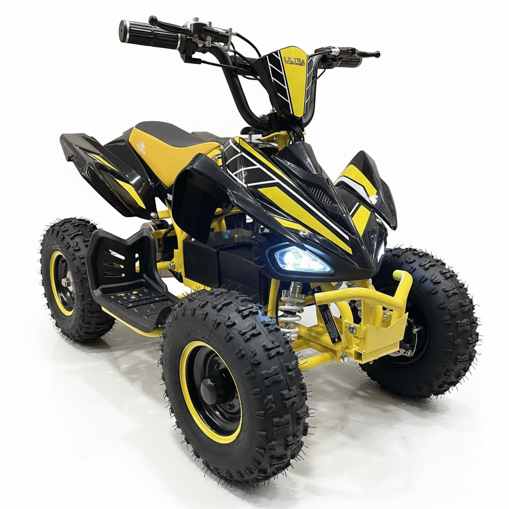 Een elektrische kinderquad is een verantwoorde manier om je kind te leren hoe het moet omgaan met een voertuig en waar op gelet moet worden bij hoge snelheden. Naast de neutrale stand zijn er drie snelheden waarop deze kinderquad begrenst kan worden: 5 km/u, 15 km/u en 30 km/u. Dit stel je zelf in met behulp van een uitneembare sleutel. Voor- en achteruitrijden is mogelijk. Deze elektrische kinderquad is geschikt voor alle soorten terreinen, van een weide tot aan de crossbaan. Dit komt onder meer dankzij het flinke vermogen, het extra stevige metalen frame, de rubberen terreinbanden en de formidabele vering. Deze 1000 watt brushless kinderquad is geschikt voor gewichten tot maximaal 75 kg.
