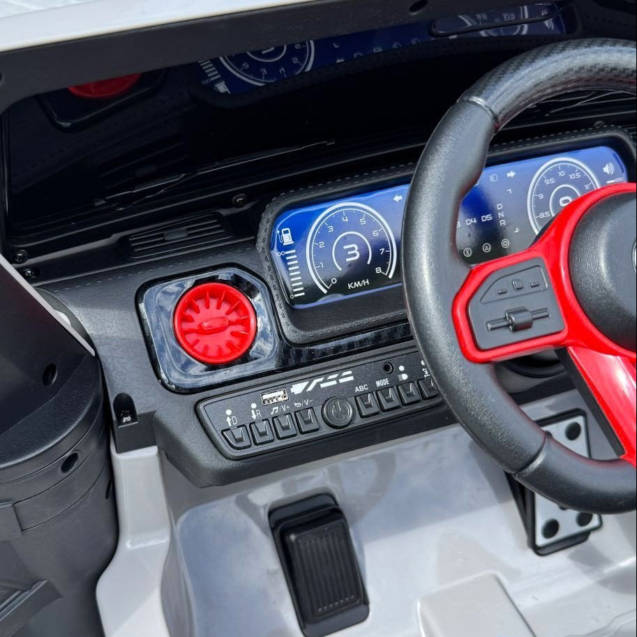 Het interieur is voorzien van een volledig geïntegreerd instrumentenpaneel waarin functionaliteit en beleving samenkomen. Muziek en audio zijn beschikbaar via Bluetooth, USB of MP3, aangevuld met een storytelling-functie die elke rit extra karakter geeft. De bediening is intuïtief verwerkt in zowel het dashboard als het stuurwiel.