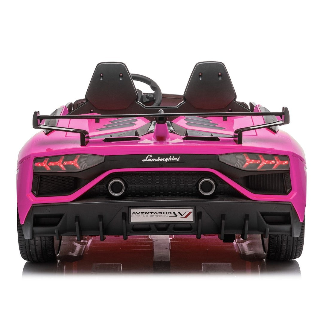 Deze exclusieve Lamborghini Aventador SVJ is een 2-persoons kinderauto in het roze die enkel bij CarKiddo in deze kleur leverbaar is. Dit is een echte Lamborghini kinderauto, aangezien het hierbij gaat om een officieel gelicentieerd model. Dat houdt in dat wij gebruik mogen maken van alle logo’s, stickers en badges van dit bekende automerk. Je kind rijdt rond in een echte Lamborghini. Dat is toch te gaaf voor woorden? De strakke roze kleur in combinatie met de dikke uitlaat voorziet deze auto van een sportief uiterlijk. Als je echt indruk wilt maken met een cadeau, is deze Lamborghini Aventador SVJ 2-persoons 24V de kinderauto voor jou.
