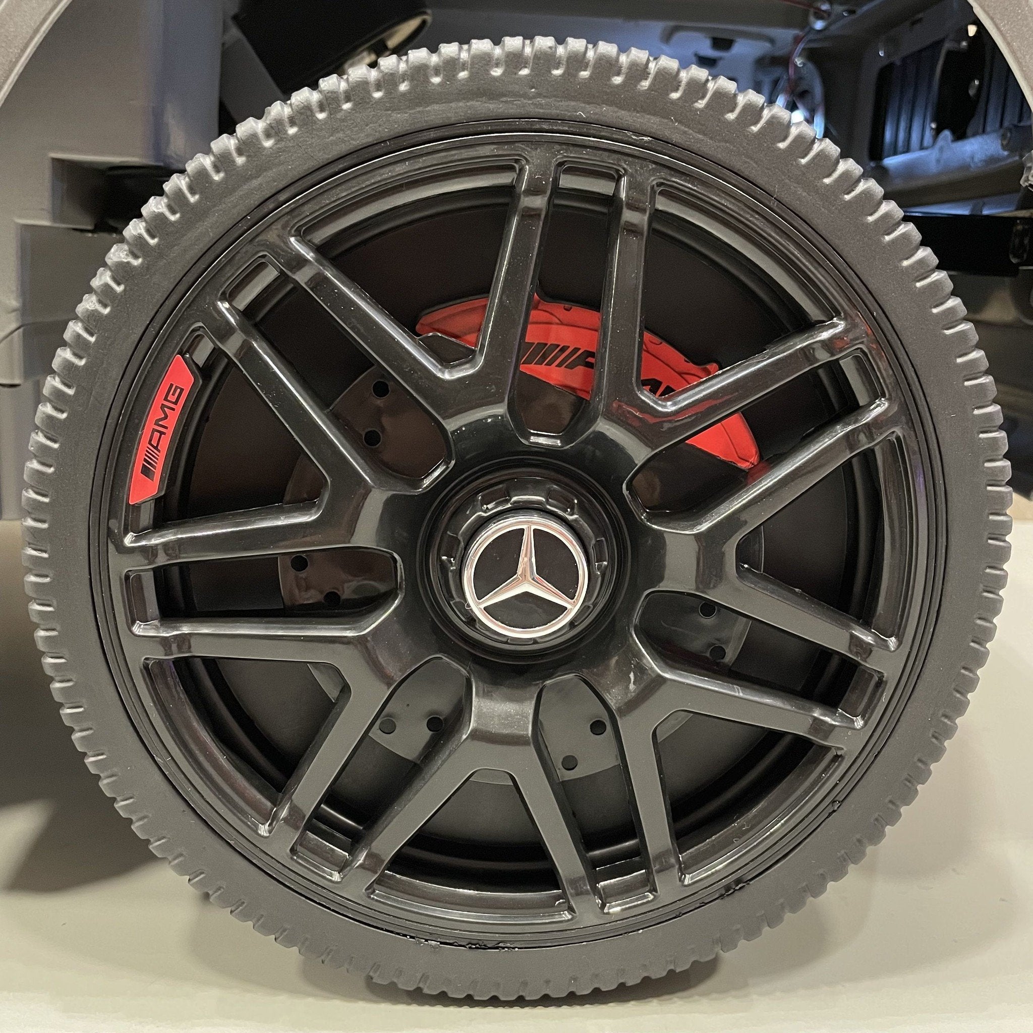 De Mercedes G63 AMG kinderauto is uitgerust met echte rubberen banden, waardoor kinderen comfortabel kunnen rijden op verschillende ondergronden zoals tegels, asfalt, klinkers, grind of zelfs in de tuin. De stevige bouw en hoogwaardige materialen zorgen ervoor dat de kinderauto stabiel, veilig en duurzaam is. Zo genieten kinderen van een soepele, stille en comfortabele rijervaring.