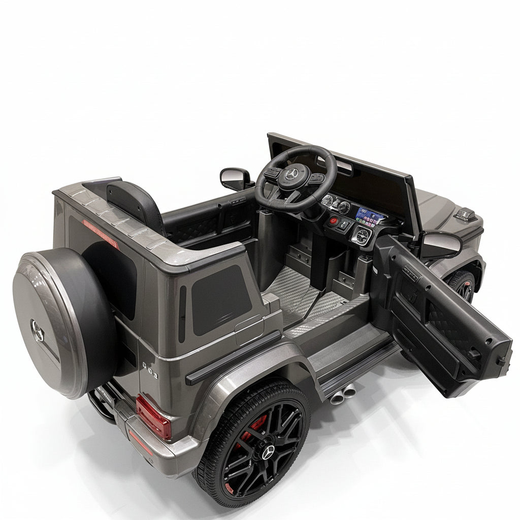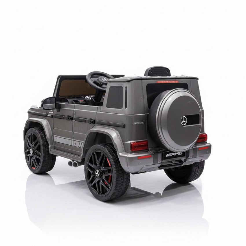 De Mercedes G63 AMG elektrische kinderauto is de perfecte keuze voor kinderen die dol zijn op stoere, luxe voertuigen. Deze kinderauto is gebaseerd op de iconische, echte Mercedes G63 AMG en biedt een realistische rijervaring die zowel binnen als buiten tot zijn recht komt. Dankzij de hoogwaardige afwerking en luxe details voelt deze kinderauto als een echte mini-Mercedes! Bij CarKiddo is de G63 accuauto exclusief voorzien van een metallic grijze gespoten lak!