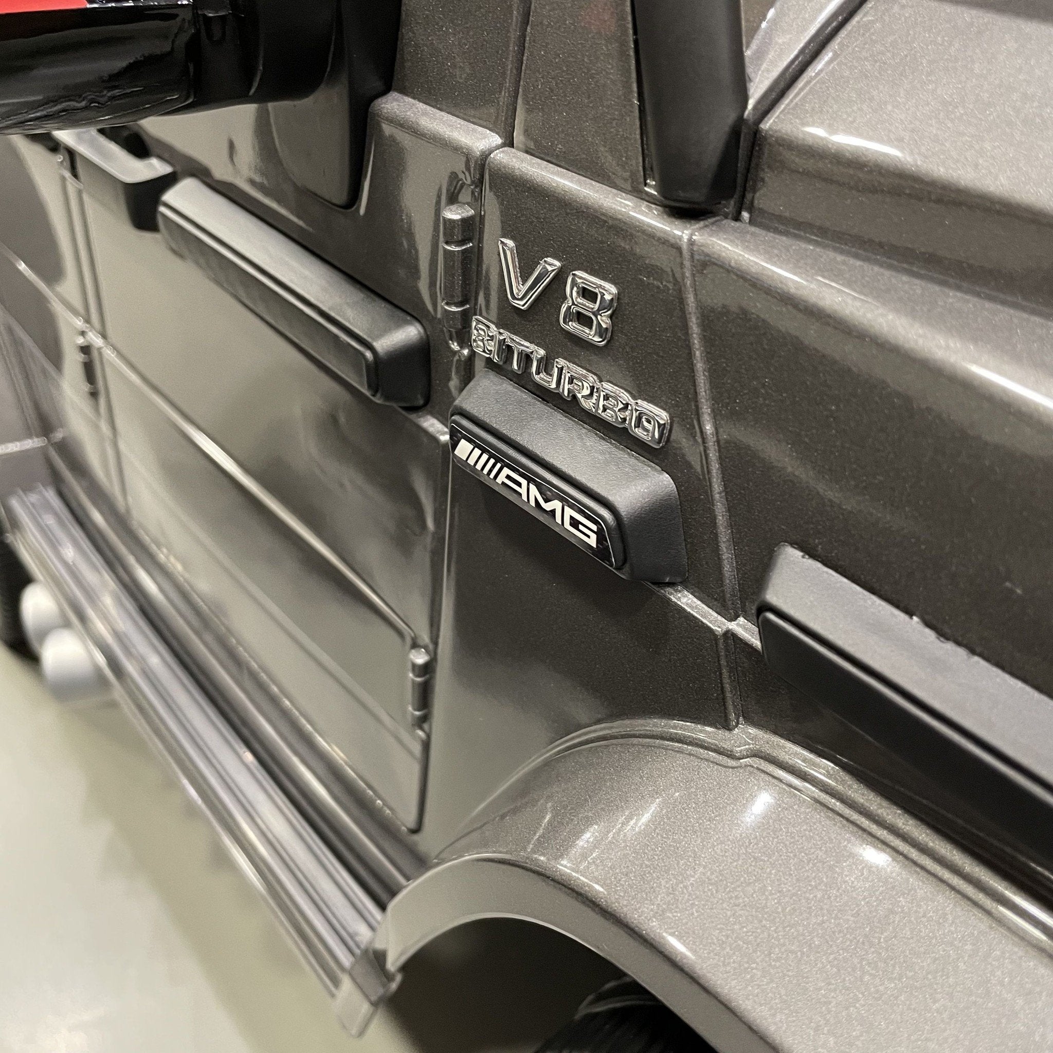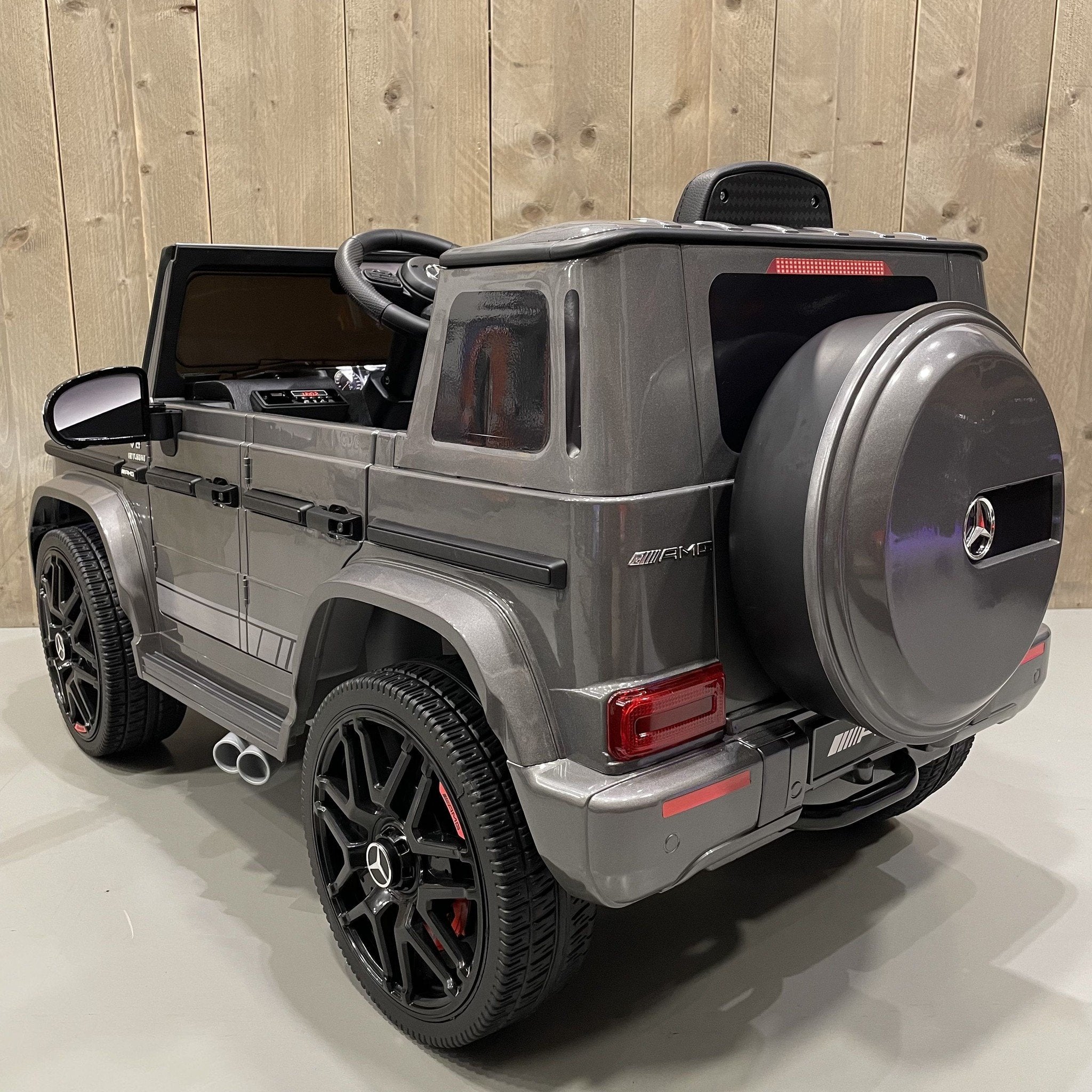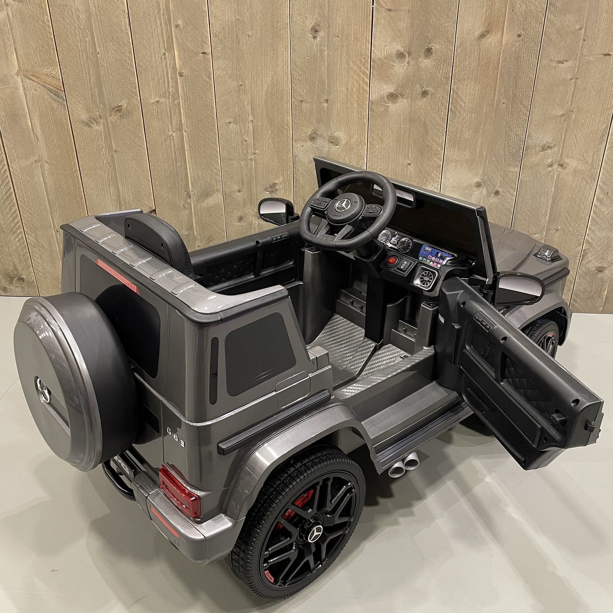 De Mercedes G63 AMG elektrische kinderauto is de perfecte keuze voor kinderen die dol zijn op stoere, luxe voertuigen. Deze kinderauto is gebaseerd op de iconische, echte Mercedes G63 AMG en biedt een realistische rijervaring die zowel binnen als buiten tot zijn recht komt. Dankzij de hoogwaardige afwerking en luxe details voelt deze kinderauto als een echte mini-Mercedes! Bij CarKiddo is de G63 accuauto exclusief voorzien van een metallic grijze gespoten lak!