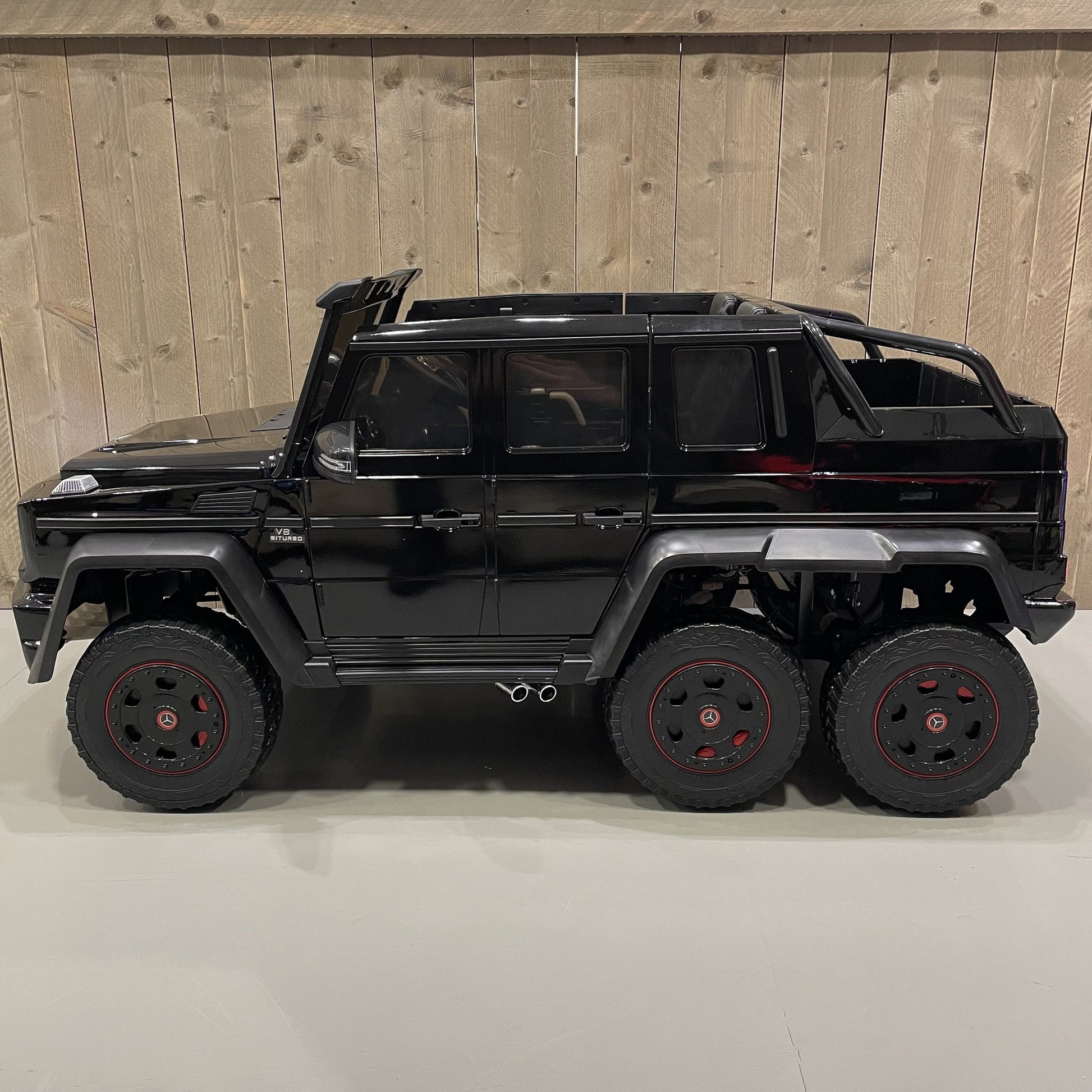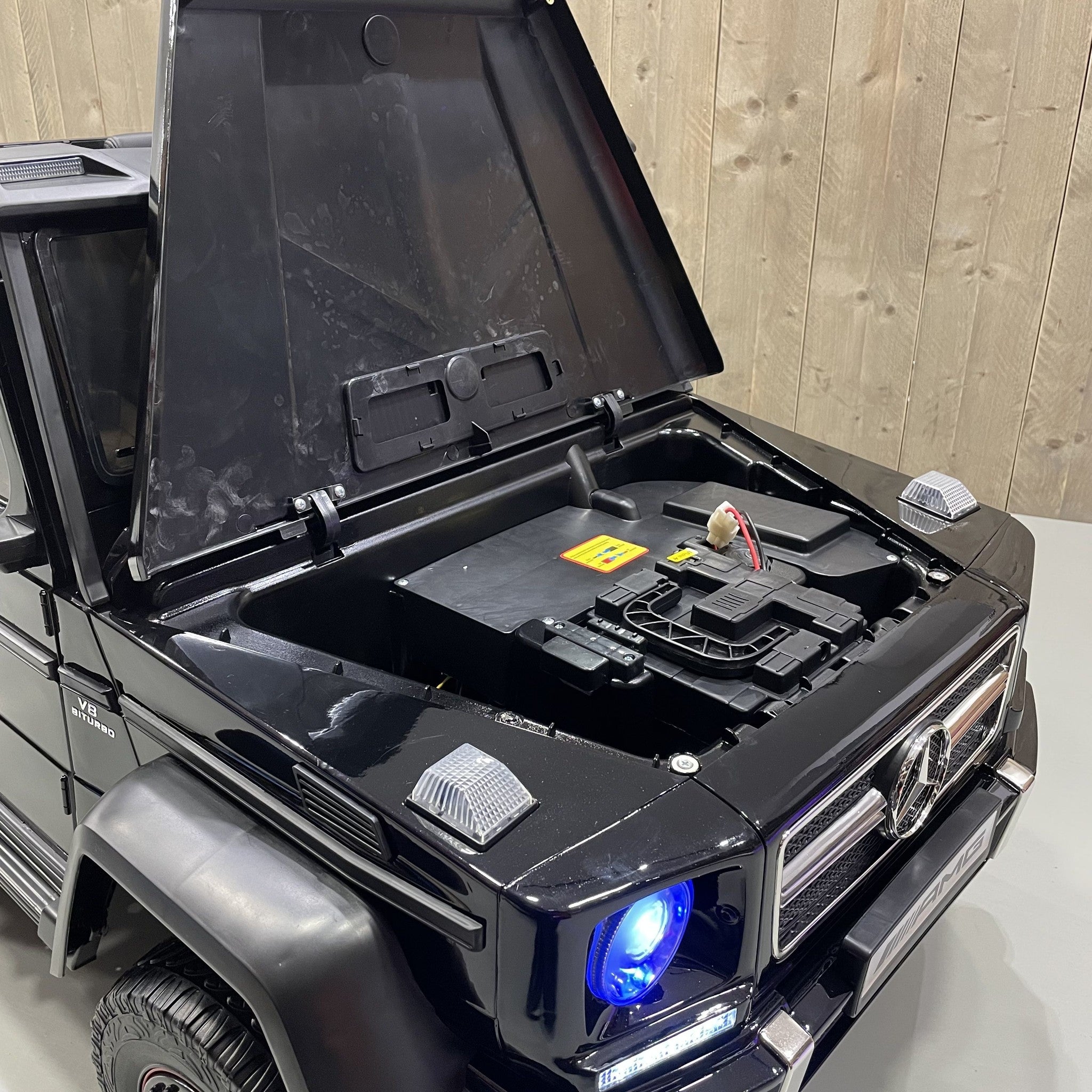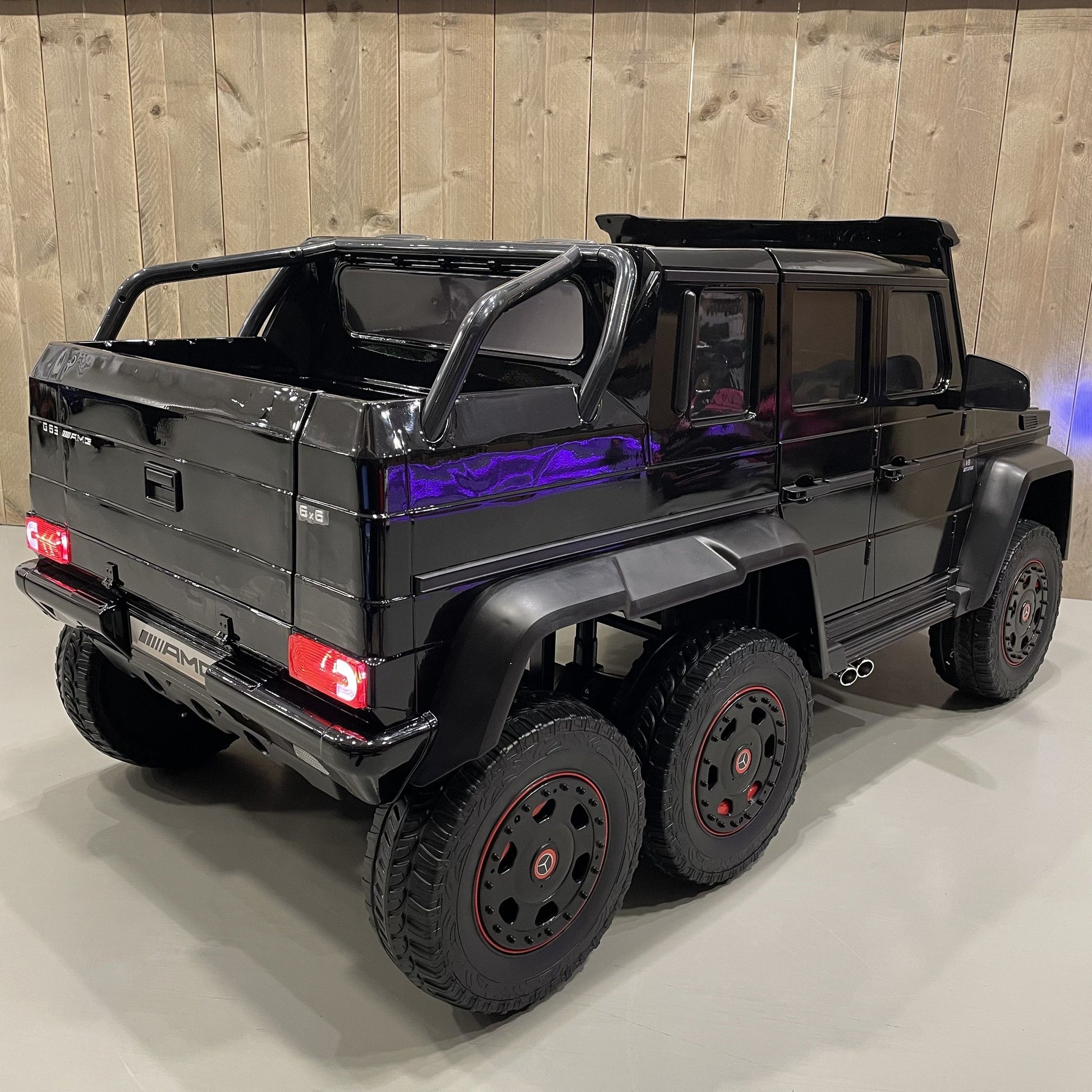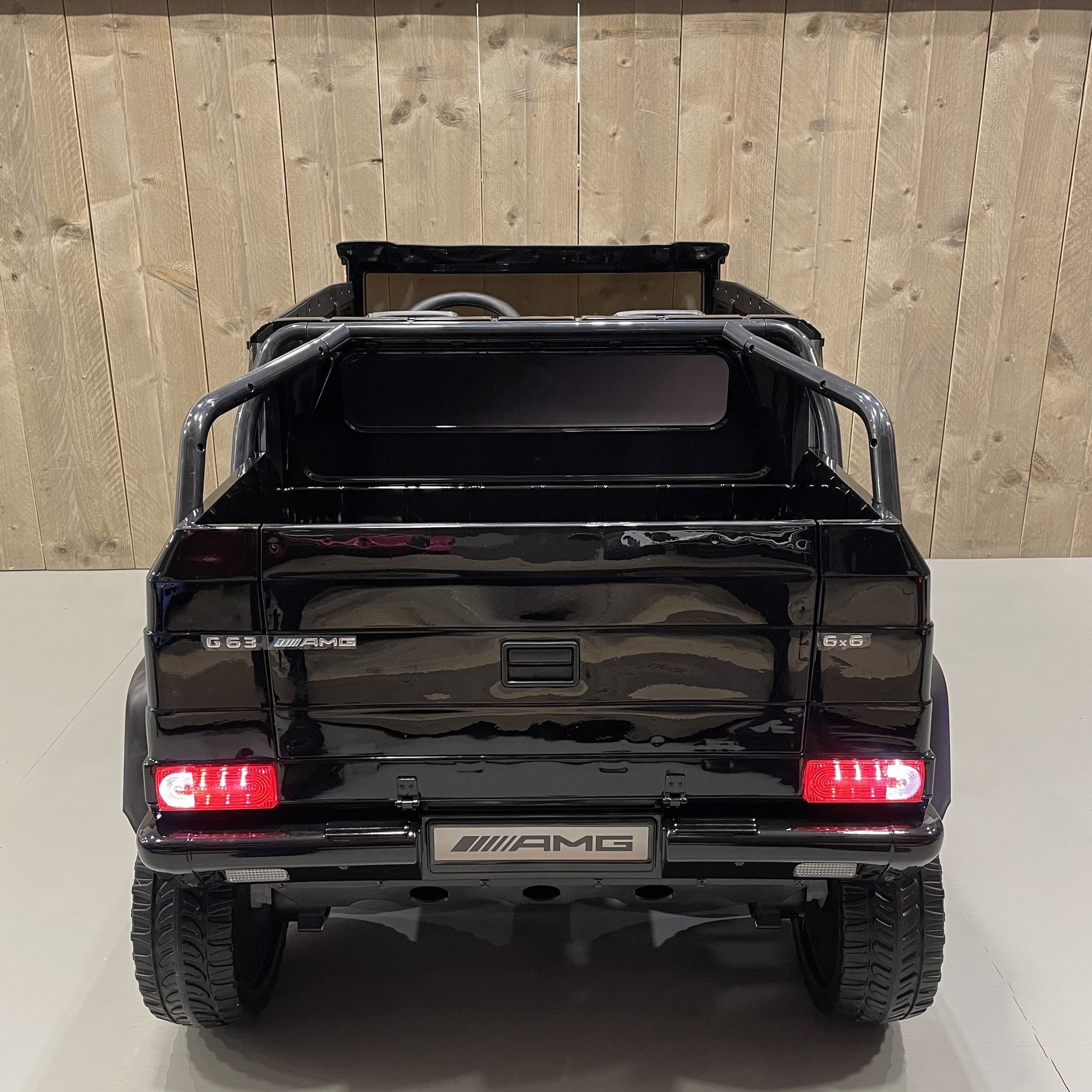 De 2-persoons Mercedes G63 6X6 AMG is een officieel gelicentieerde kinderauto. Dit betekent dat wij toestemming hebben om alle logo's, stickers en badges te gebruiken van Mercedes-Benz
