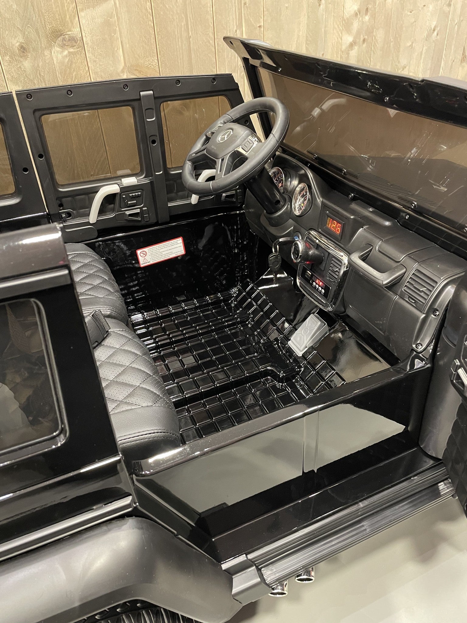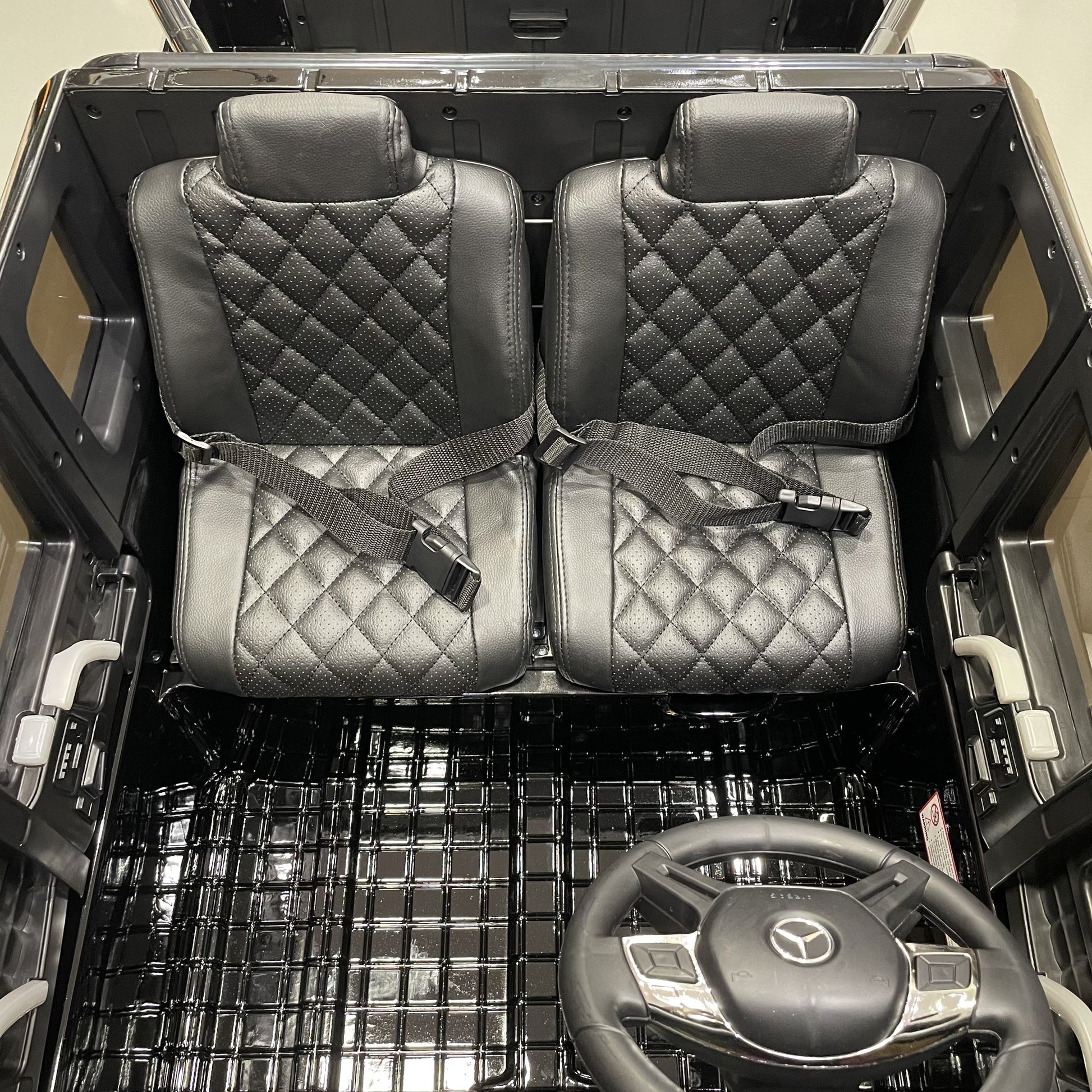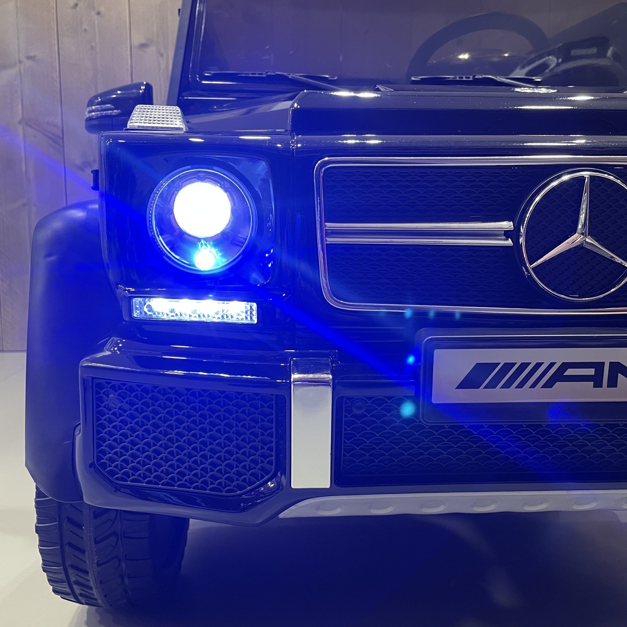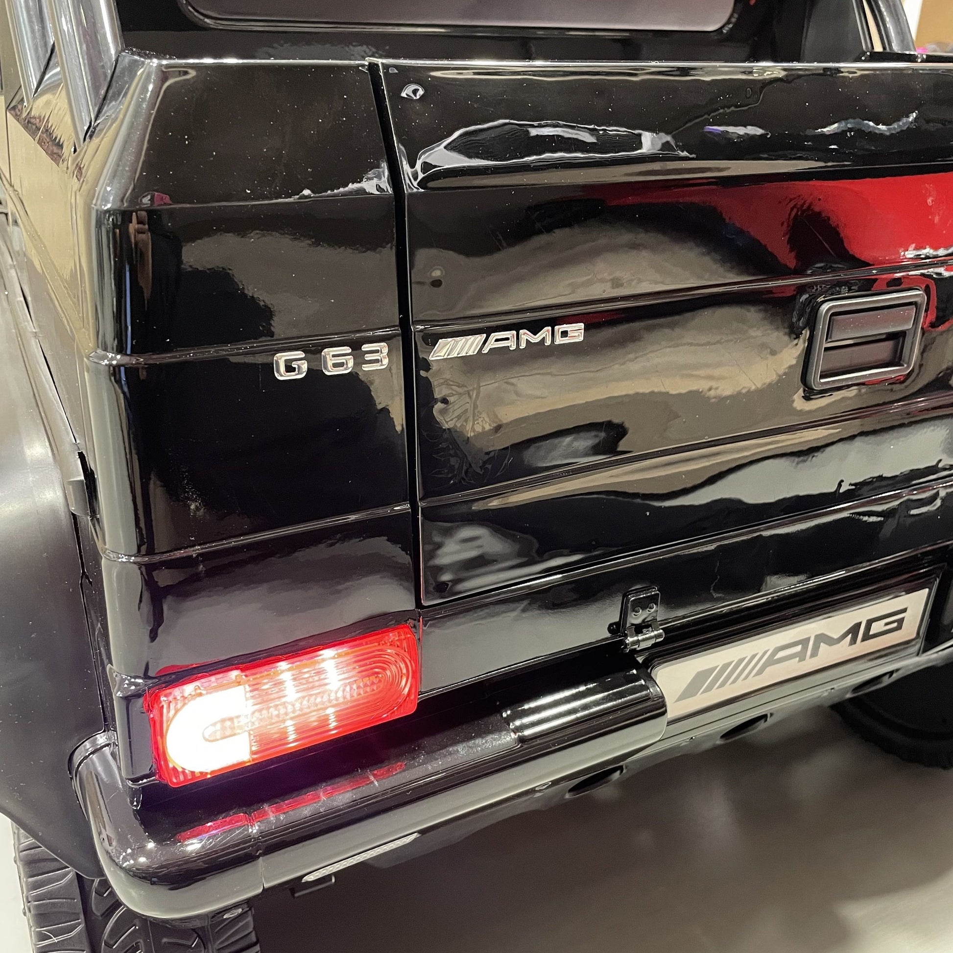 De 2-persoons Mercedes G63 6X6 AMG is een officieel gelicentieerde kinderauto. Dit betekent dat wij toestemming hebben om alle logo's, stickers en badges te gebruiken van Mercedes-Benz