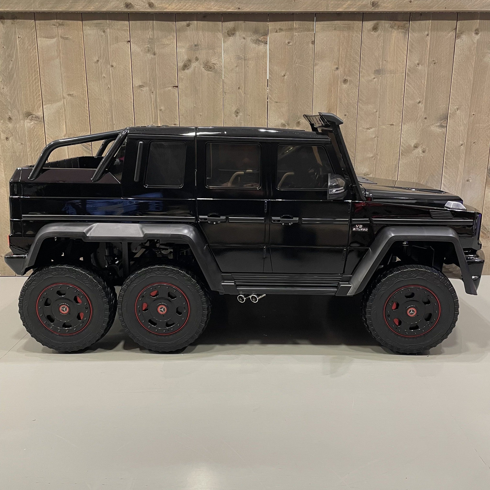 De 2-Persoons Mercedes G63 6x6 AMG! 2-zitplaatsen met gordel, 2x zoveel plezier! De kids kunnen genieten als nooit tevoren met de nieuwe 2-persoons Mercedes G63 6x6 AMG. Het model is geïnspireerd op de originele Mercedes G63 6x6 AMG. Deze kinderauto is ideaal om buiten op verschillende soorten terreinen te rijden. De Mercedes G63 6x6 AMG beschikt namelijk over 6 echte rubberen banden. Dit zorgt voor comfort en rijgemak.