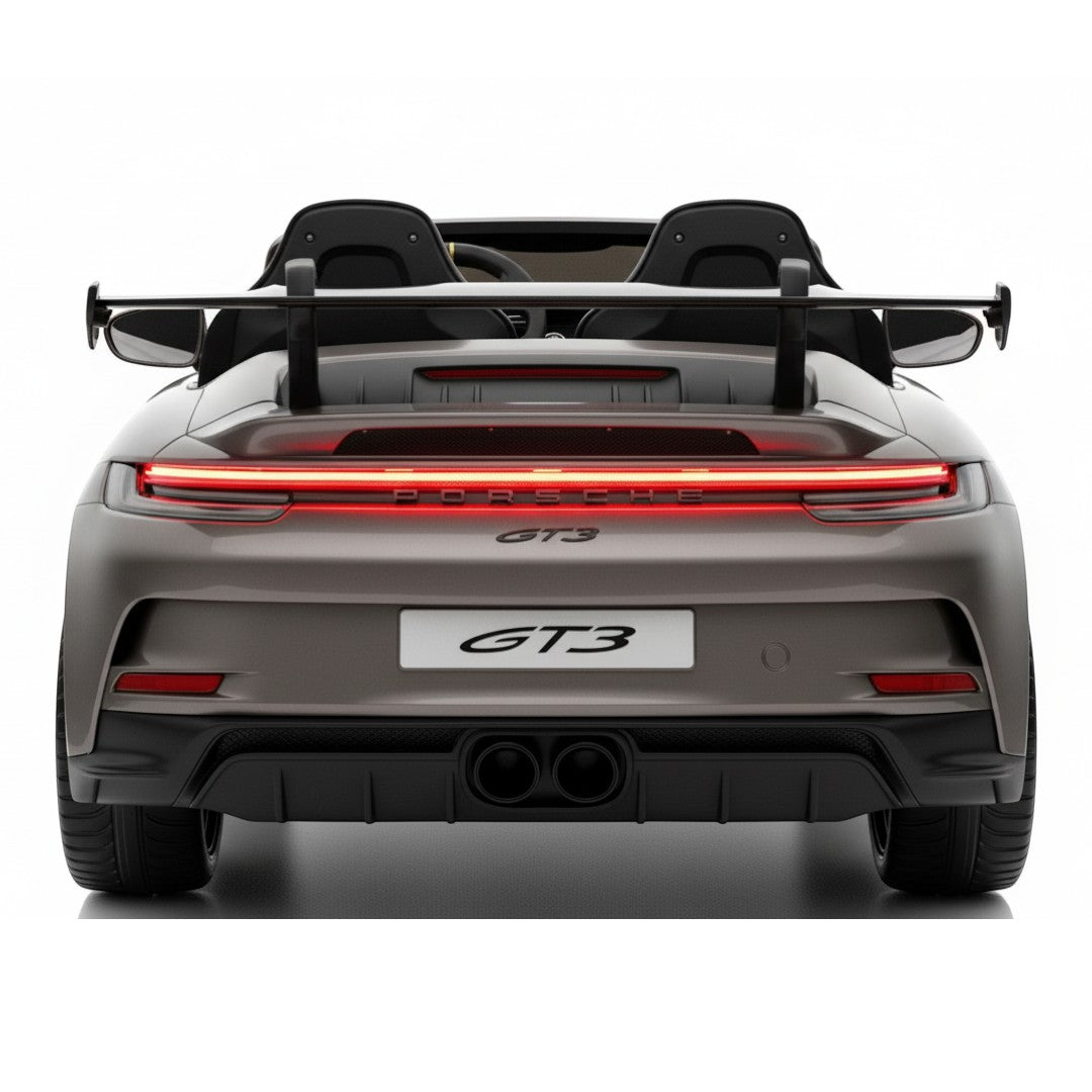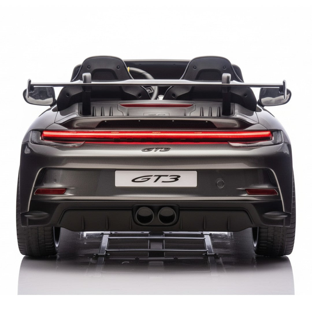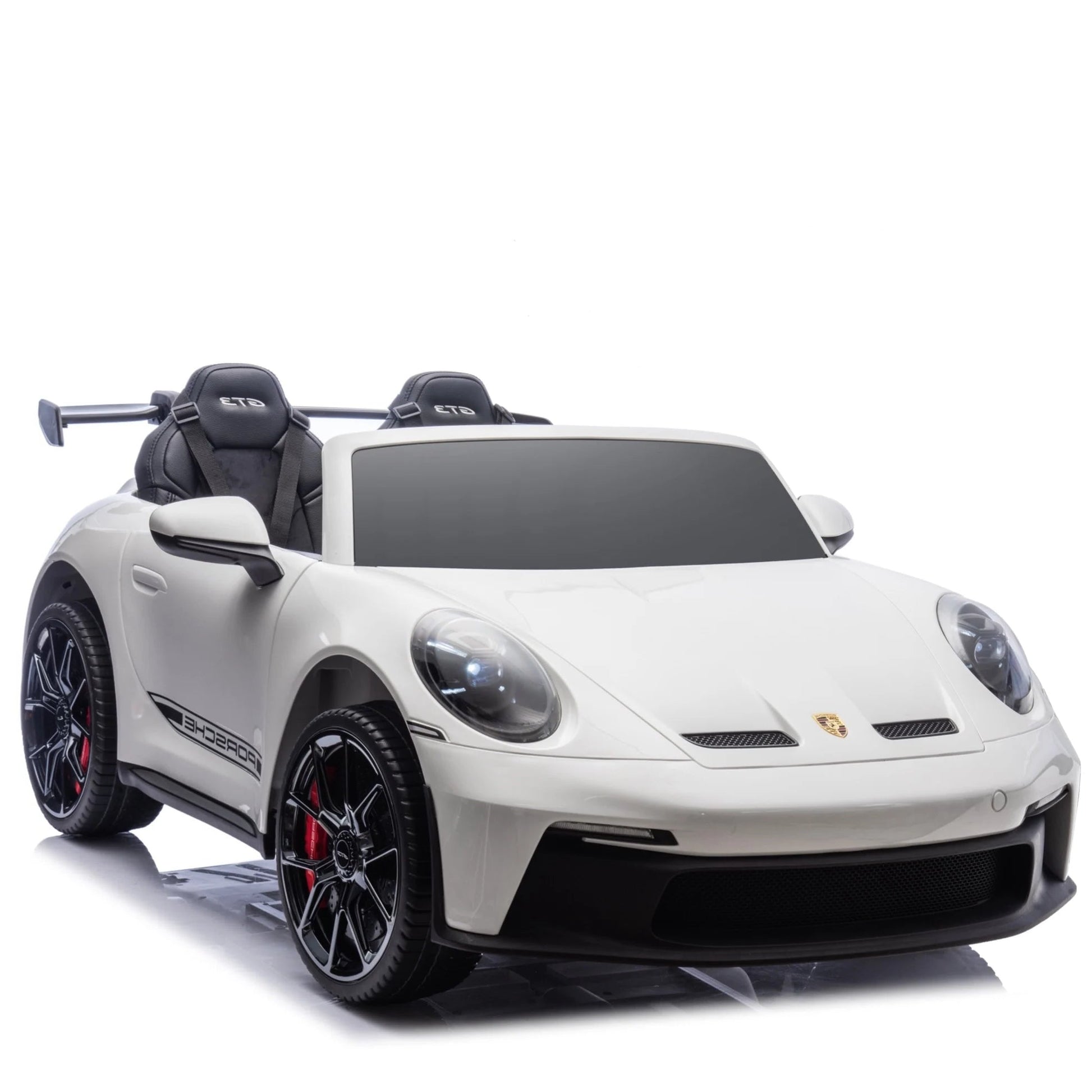 De Porsche 911 GT3 RS 24V is uitgerust met een dubbele leren stoel, voorzien van twee 3-puntsgordels, zodat beide kinderen veilig kunnen meerijden. Ouders behouden altijd de controle dankzij de draadloze afstandsbediening, waarmee je de auto eenvoudig kunt sturen, stoppen of van richting laten veranderen.