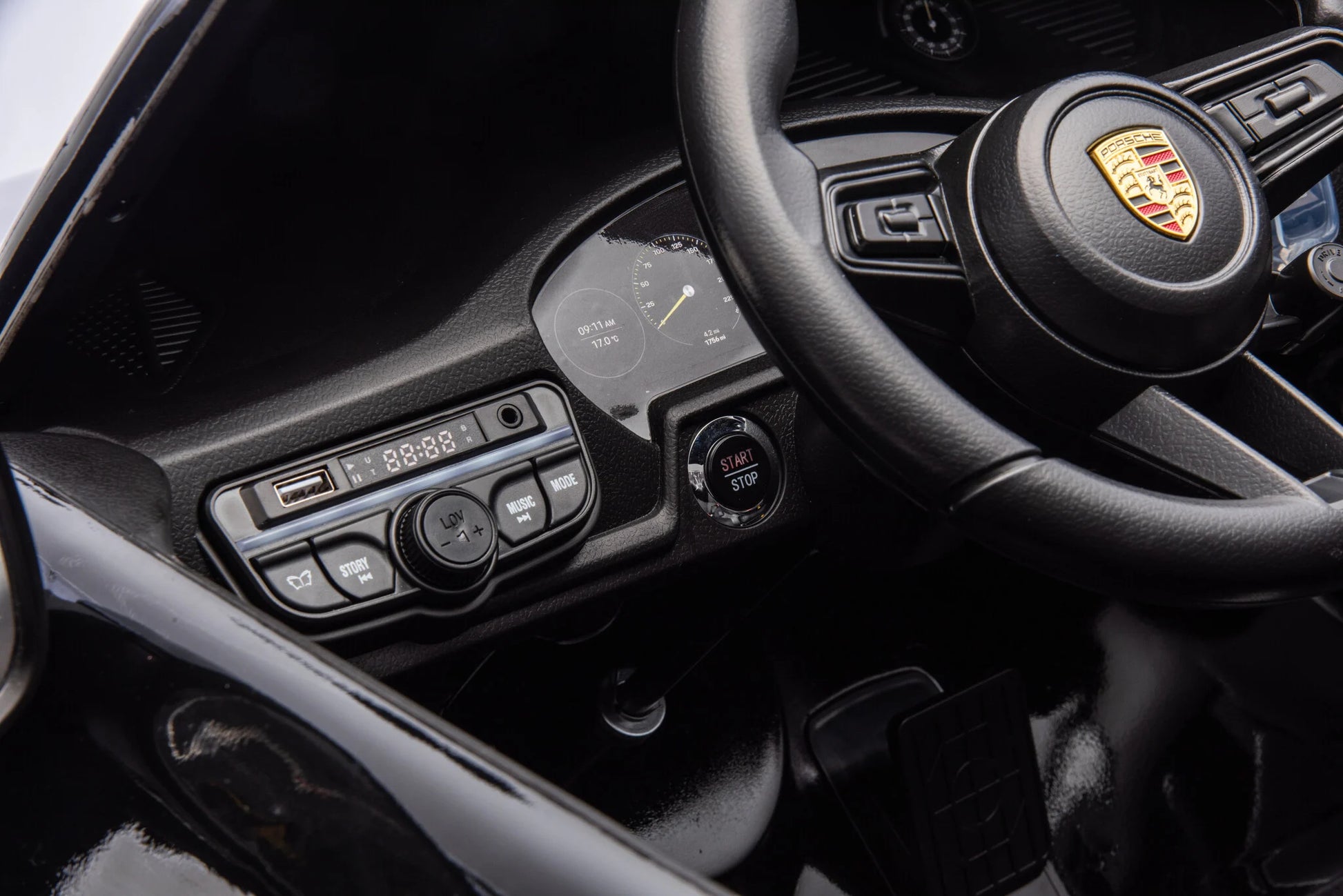 Het interieur is stijlvol afgewerkt en biedt ruimte, comfort en luxe precies wat je van een Porsche kinderauto mag verwachten.